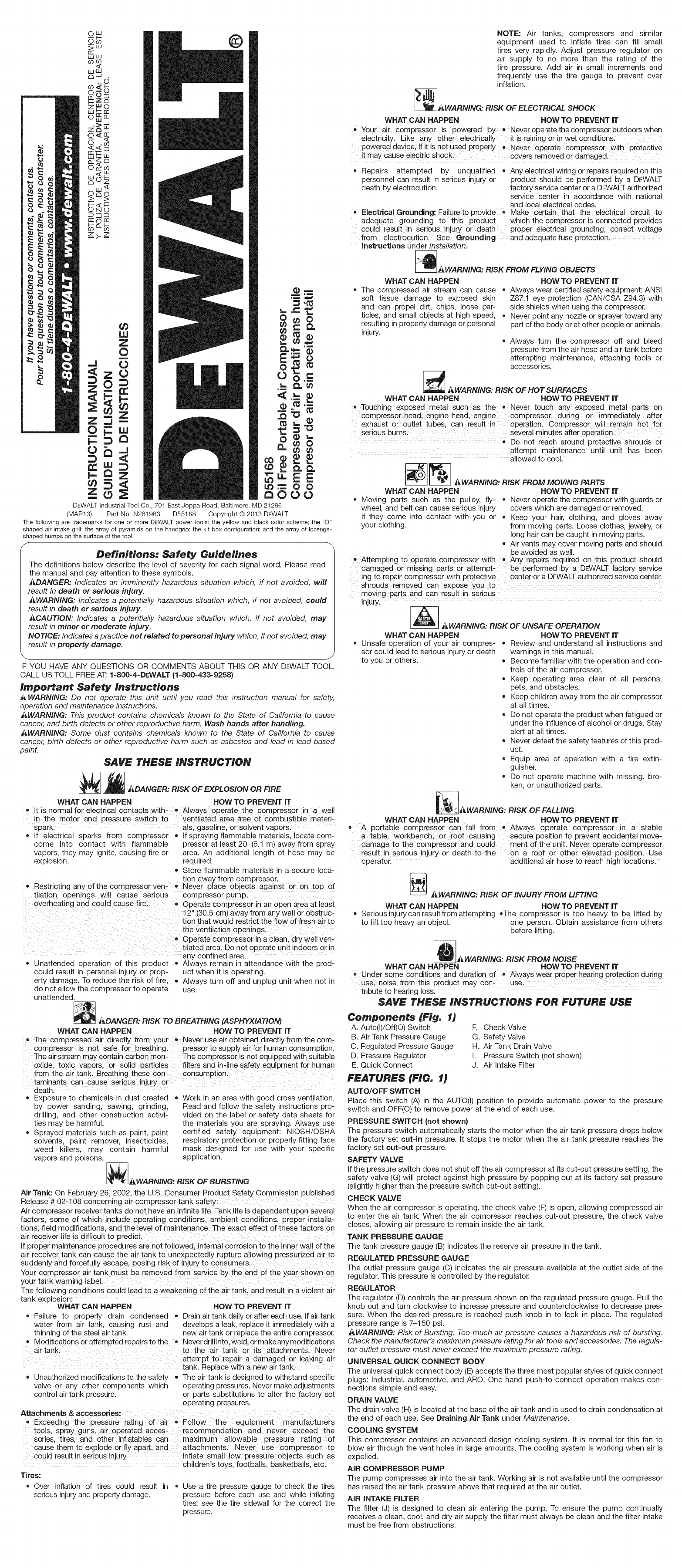 Dewalt D55168 TYPE 6 1406356L User Manual COMPRESSOR Manuals And Guides