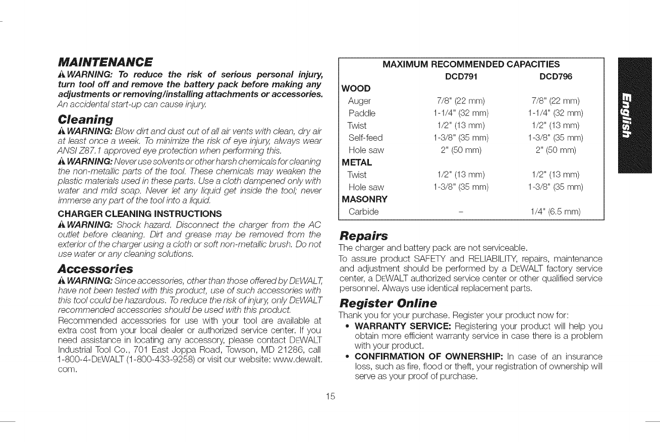Dewalt DCD791B TYPE 1 1602056L User Manual CORDLESS DRILL Manuals And Guides