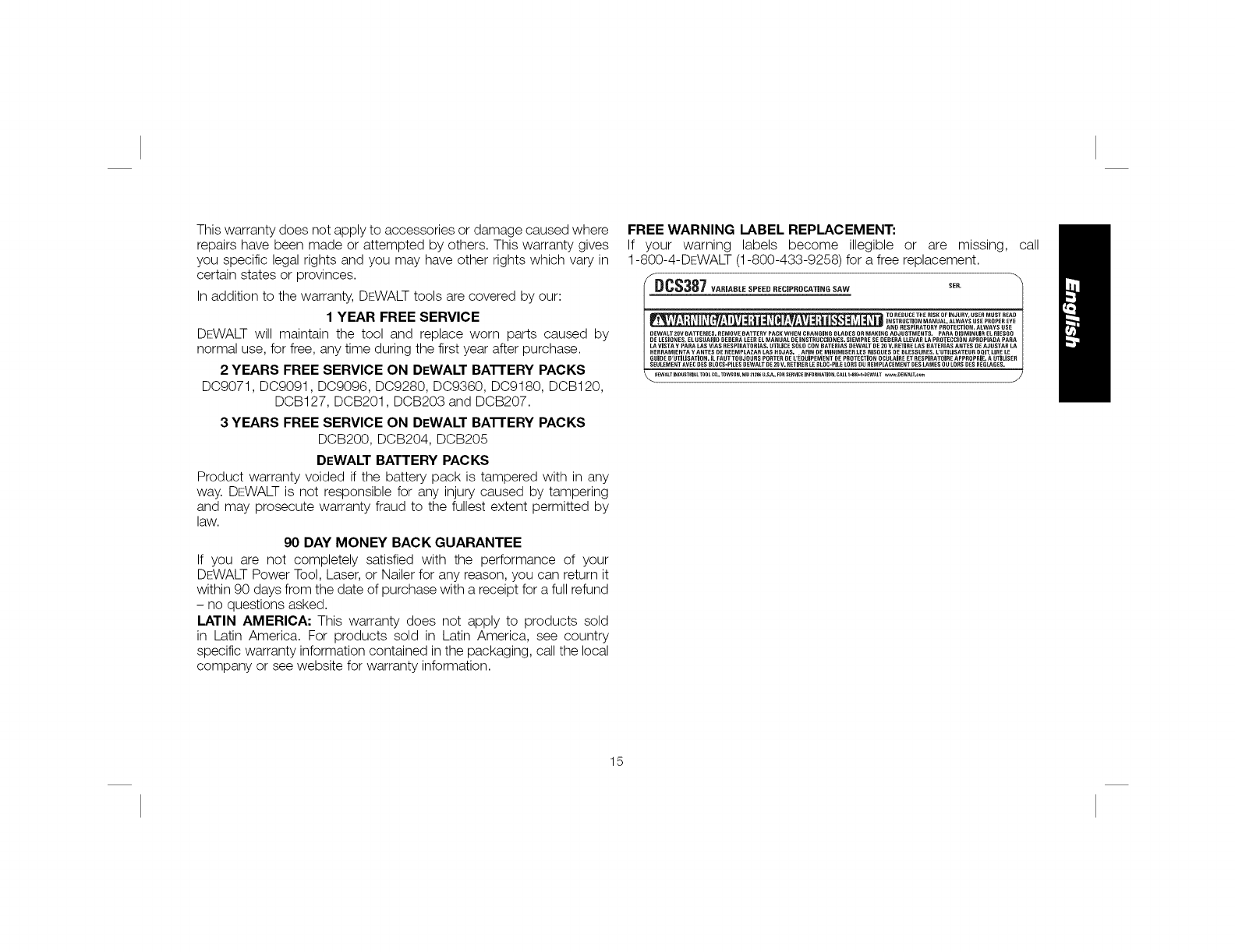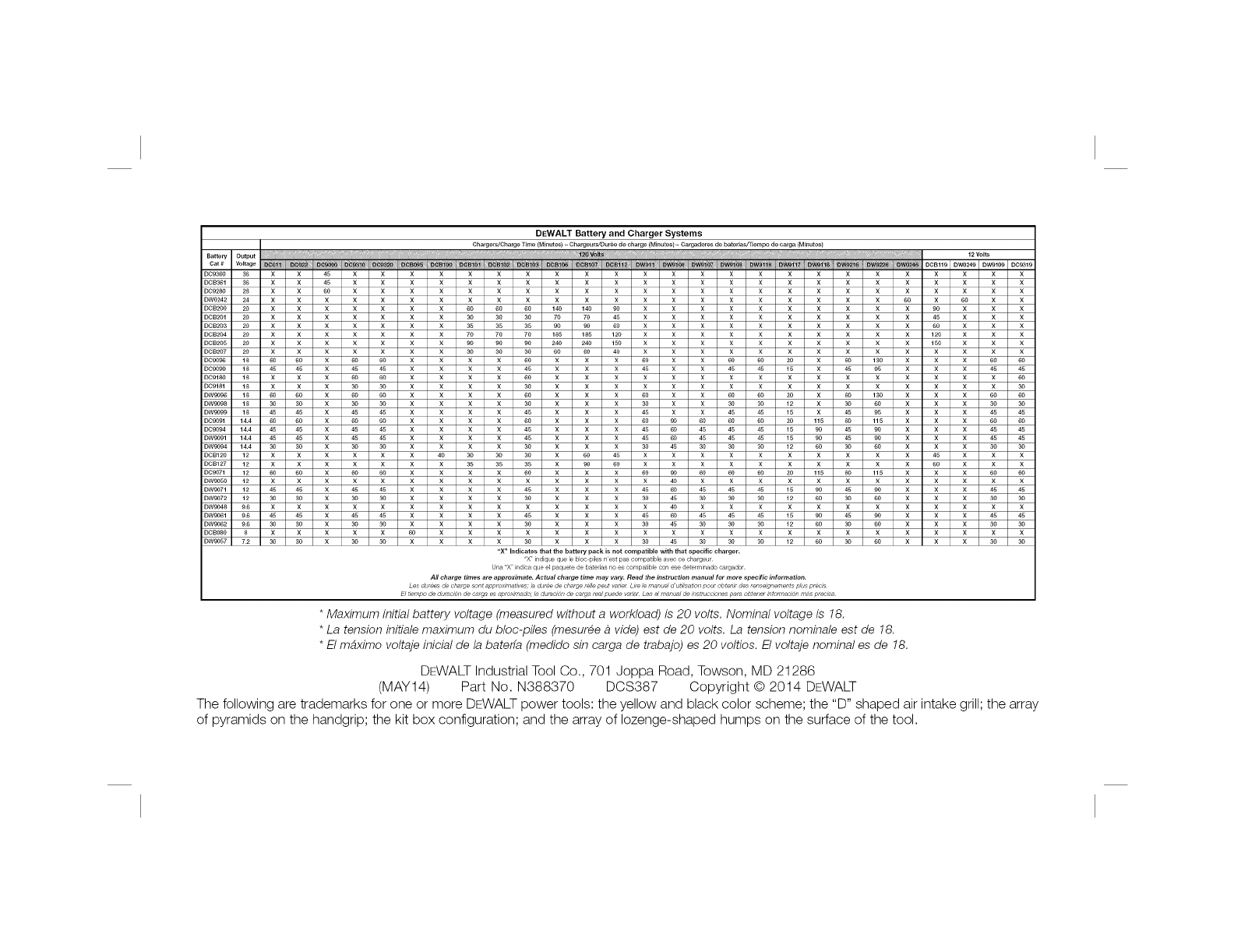 (MAY14) Part No. N388370 DCS387 Copyright © 2014 DEWALT