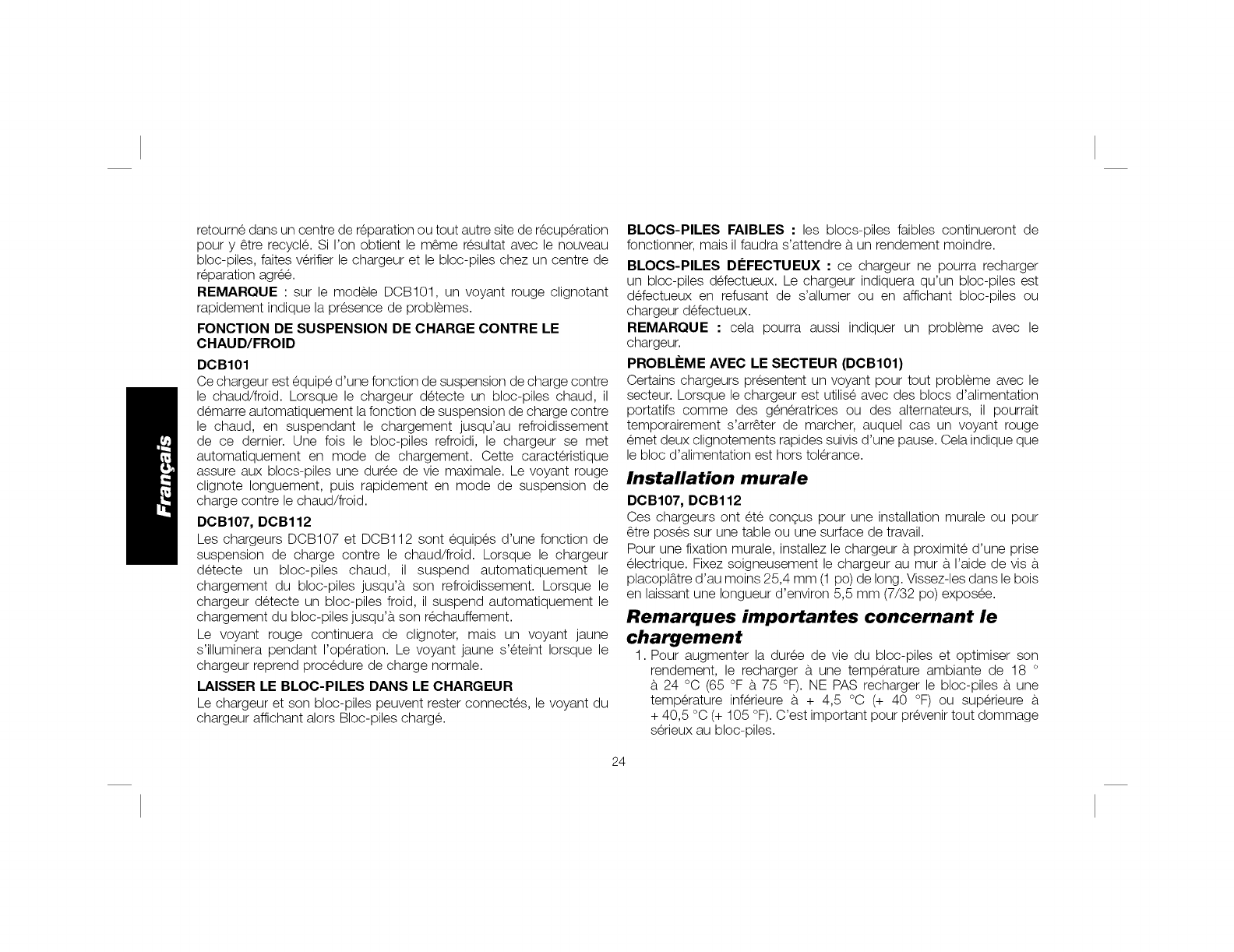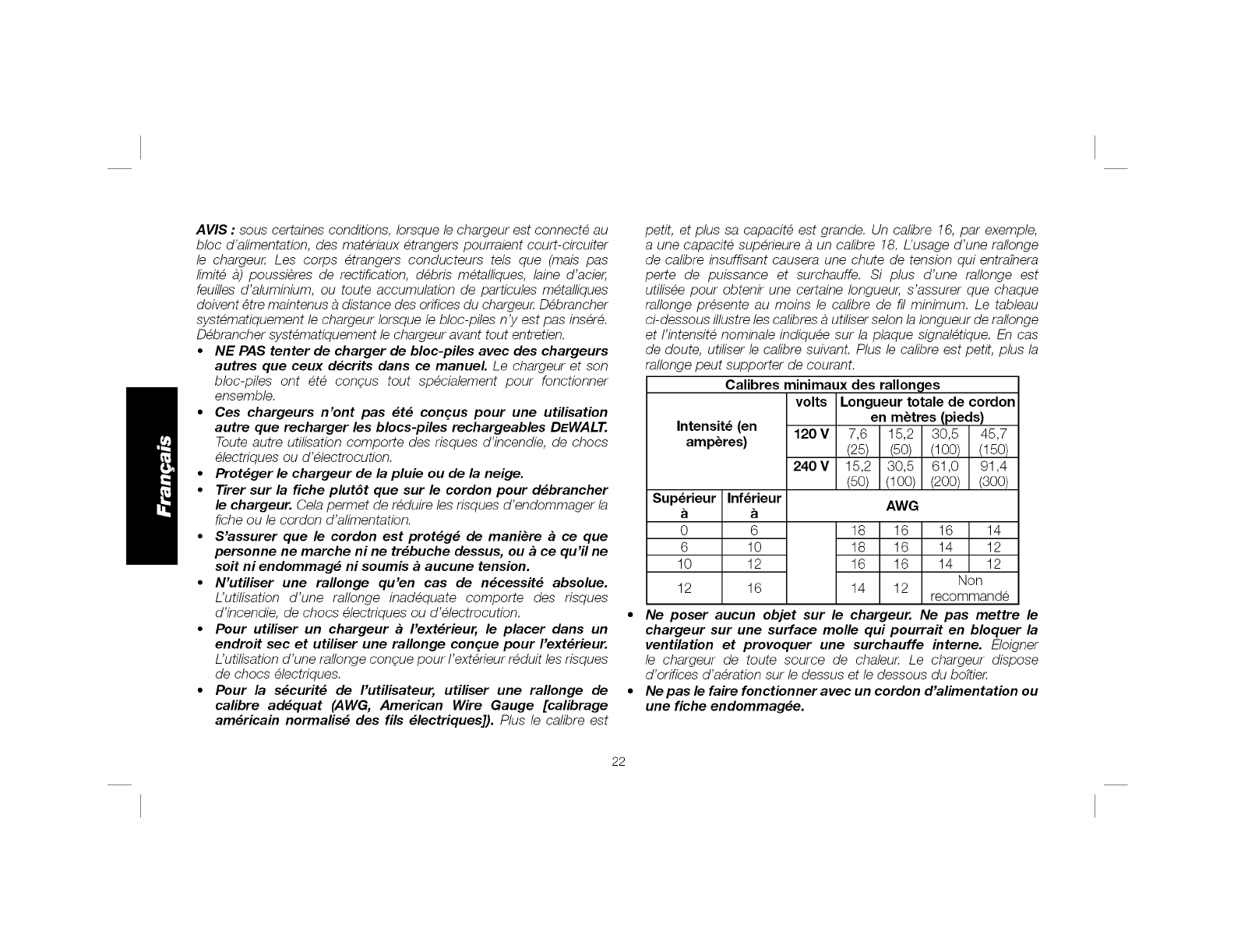* La tension initiate maximum du bloc-piles (mesuree a vide) est de 20 volts. La tension nominate est de 18.