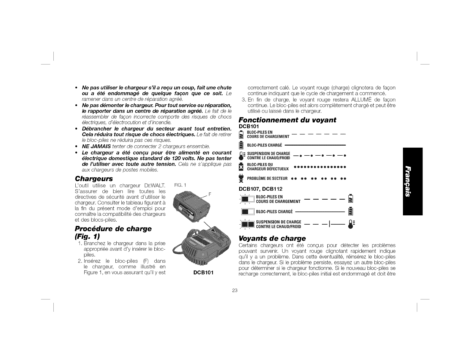 X" indique que le bloc piles n'est pas compatible avec ce chargeur