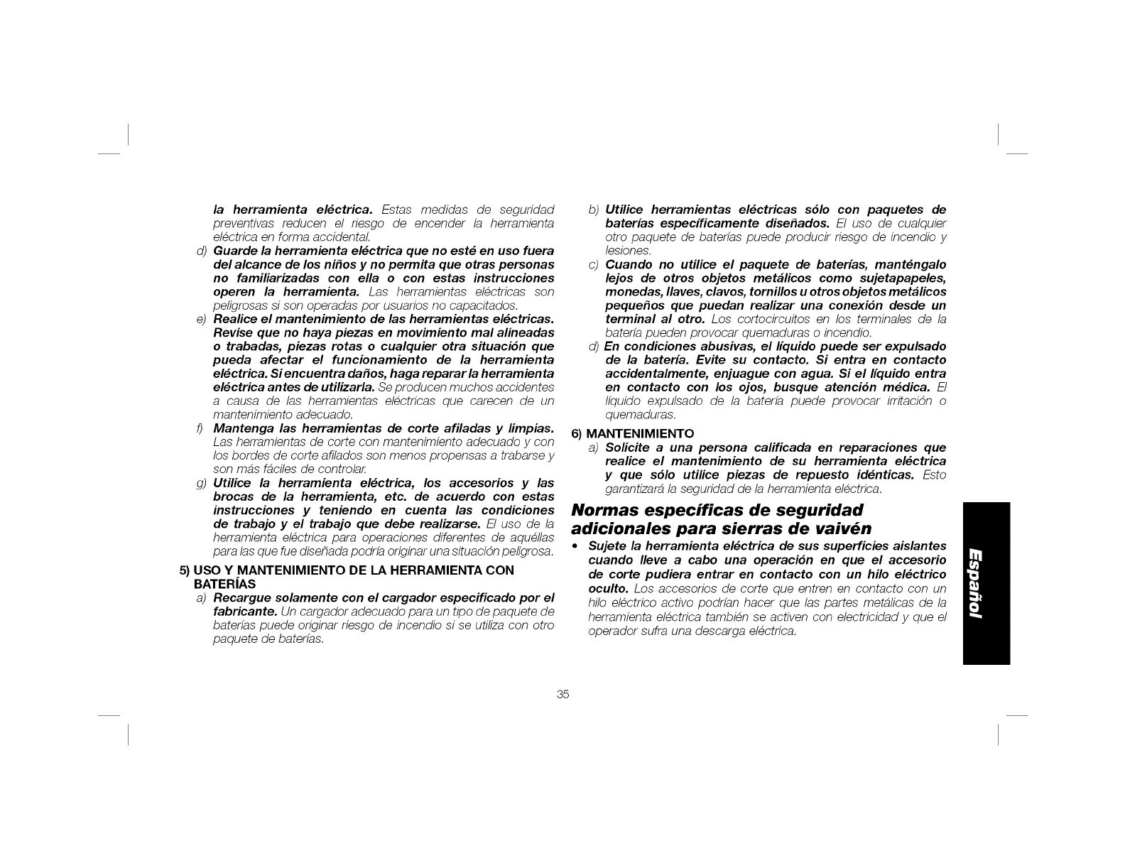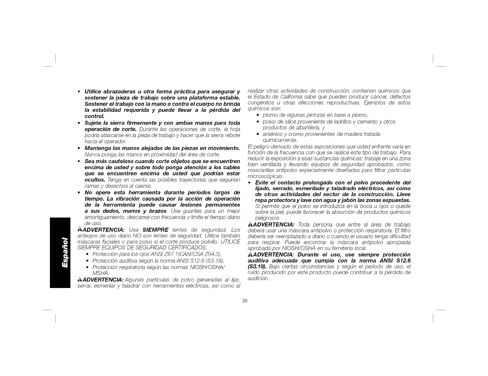 DE LESiONER, EL gGUAOlO DEBERA LEER EL MANUAL DE INSTOUCCiONES. SIEMPRE SE OERERA LLEVAR LA PROTECCI(}N APROPIADA PARR