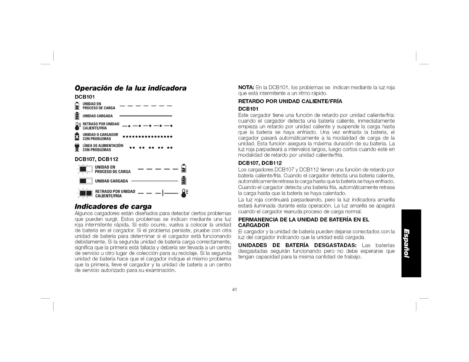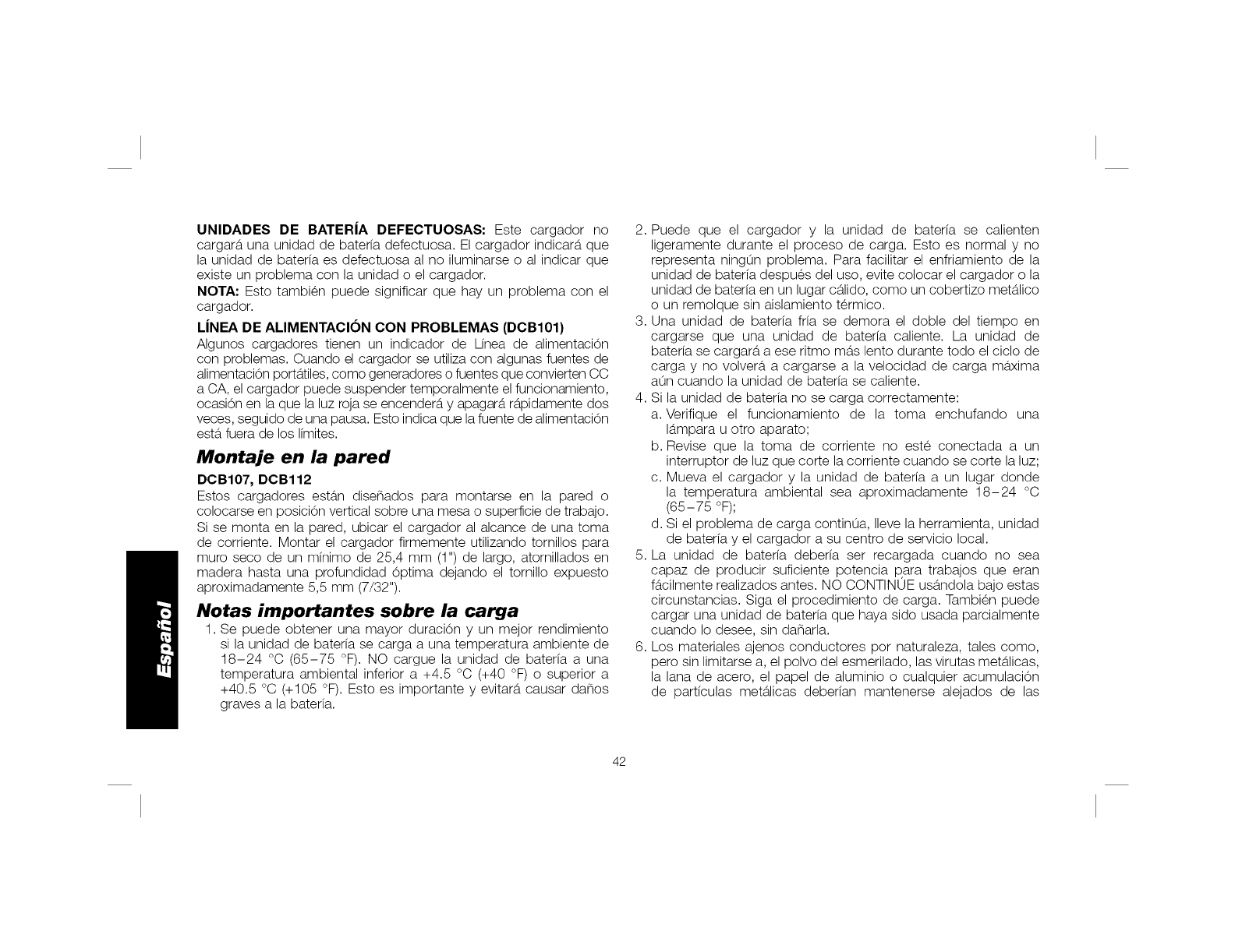 * Et m9ximo vottaje iniciat de ta baterfa (med/do sin carga de trabajo) es 20 vottios. Et vottaje nominal es de 18.