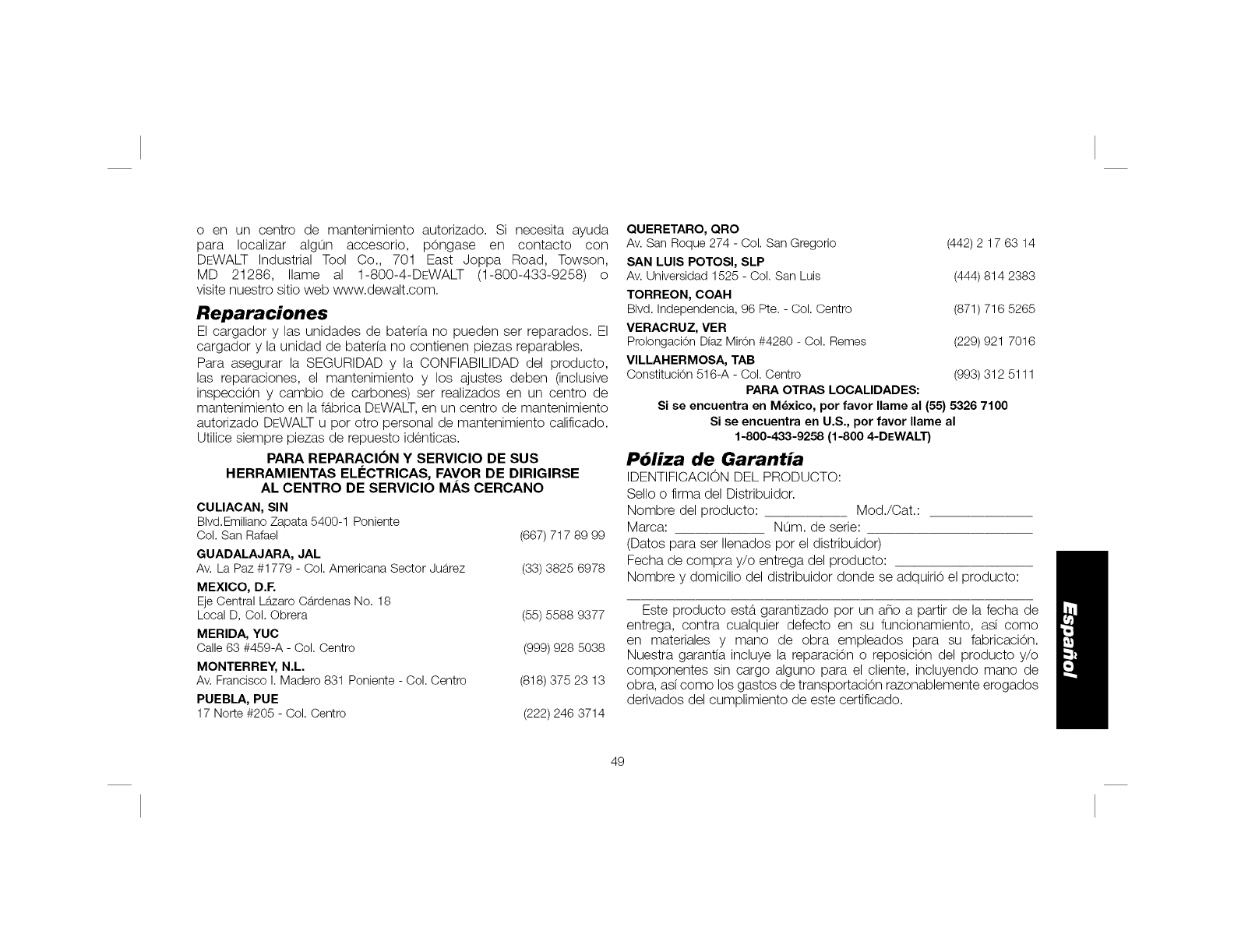 o faltan, Ilame al 1-800-4-DFWALT (1-800-433-9258) para que se le