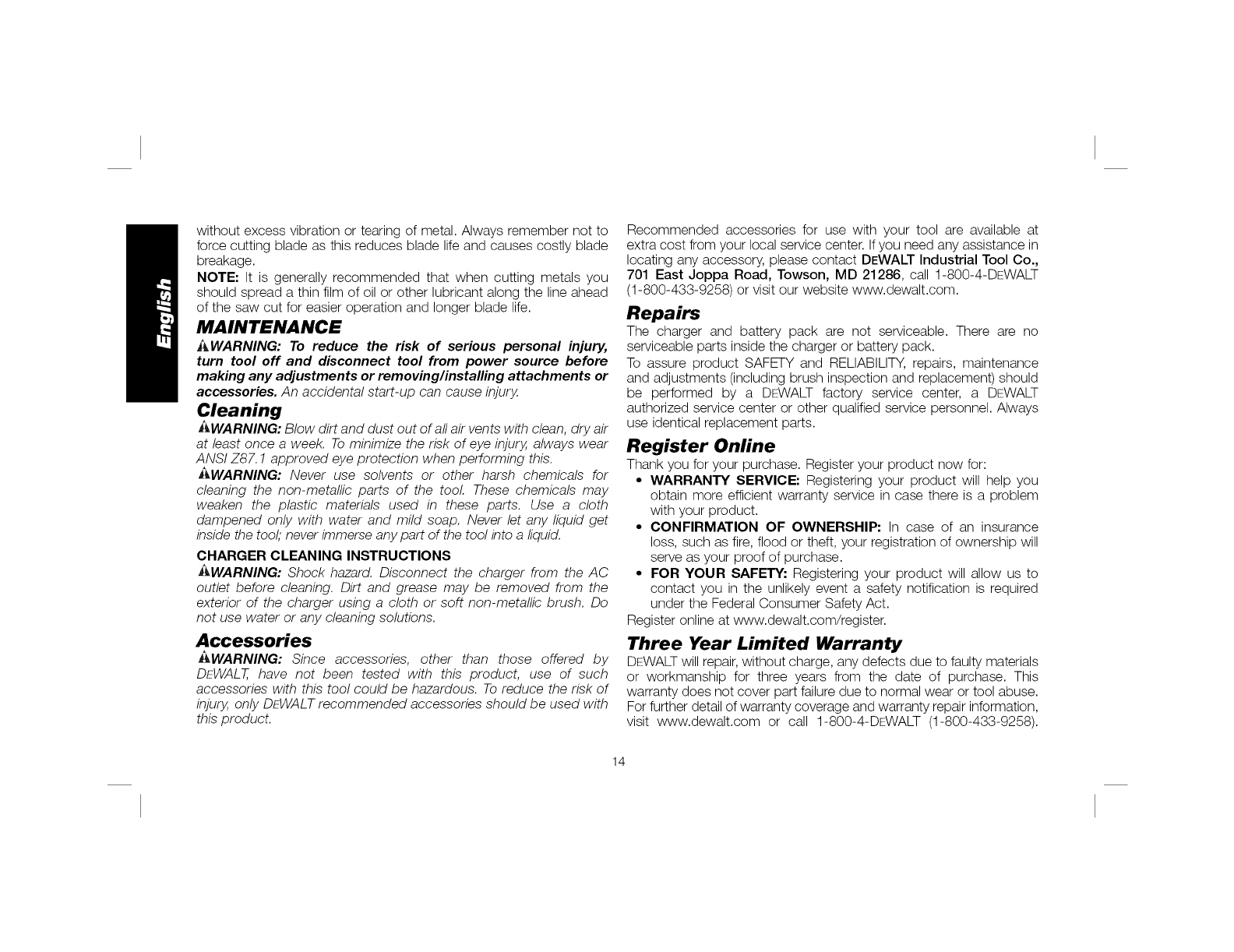 ANY DEWALT TOOL, CALL US TOLL FREE AT: 1-800-4-DEWALT