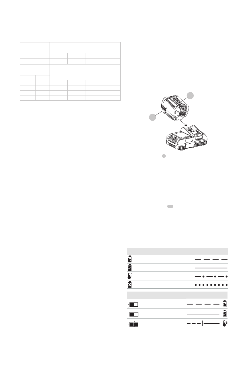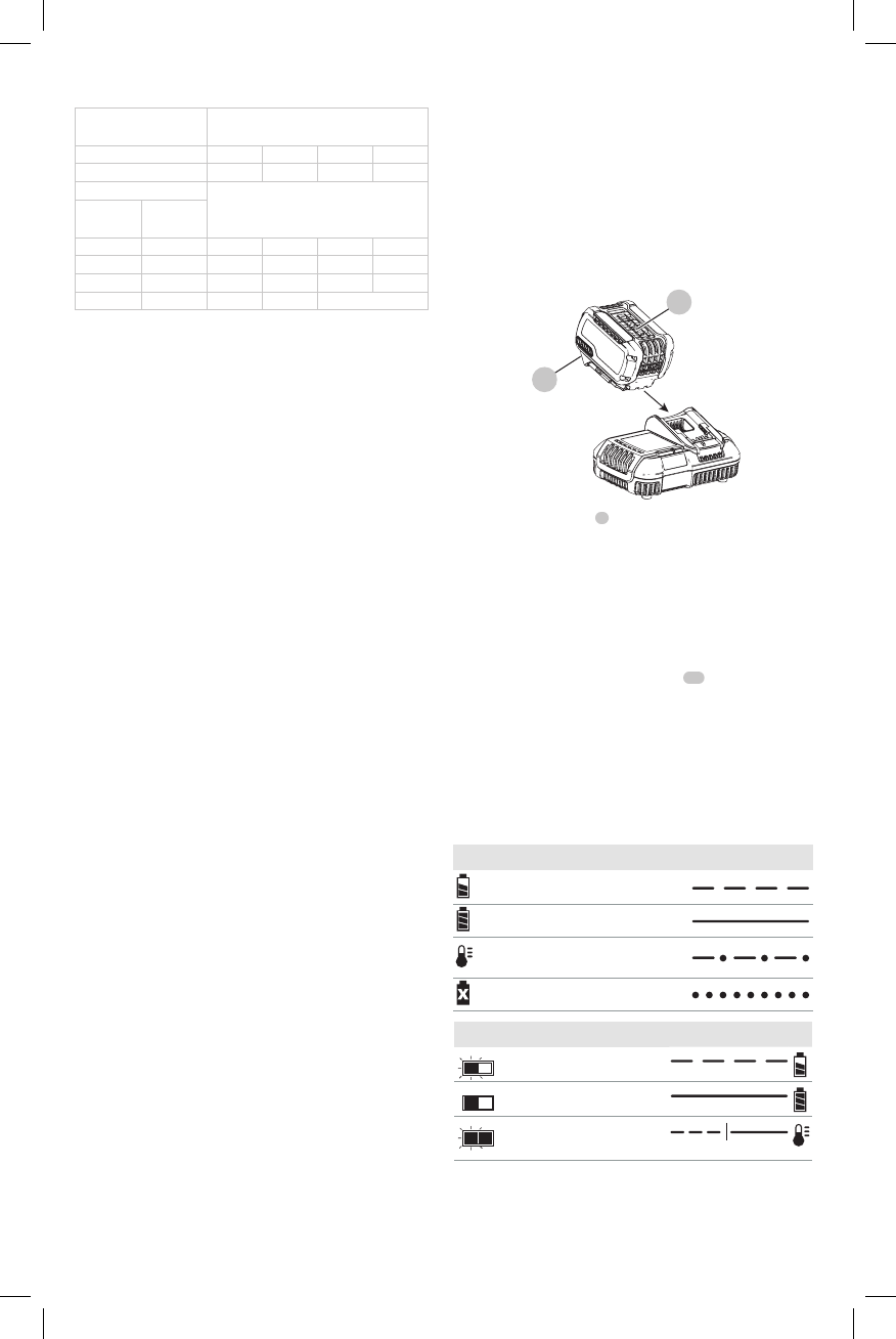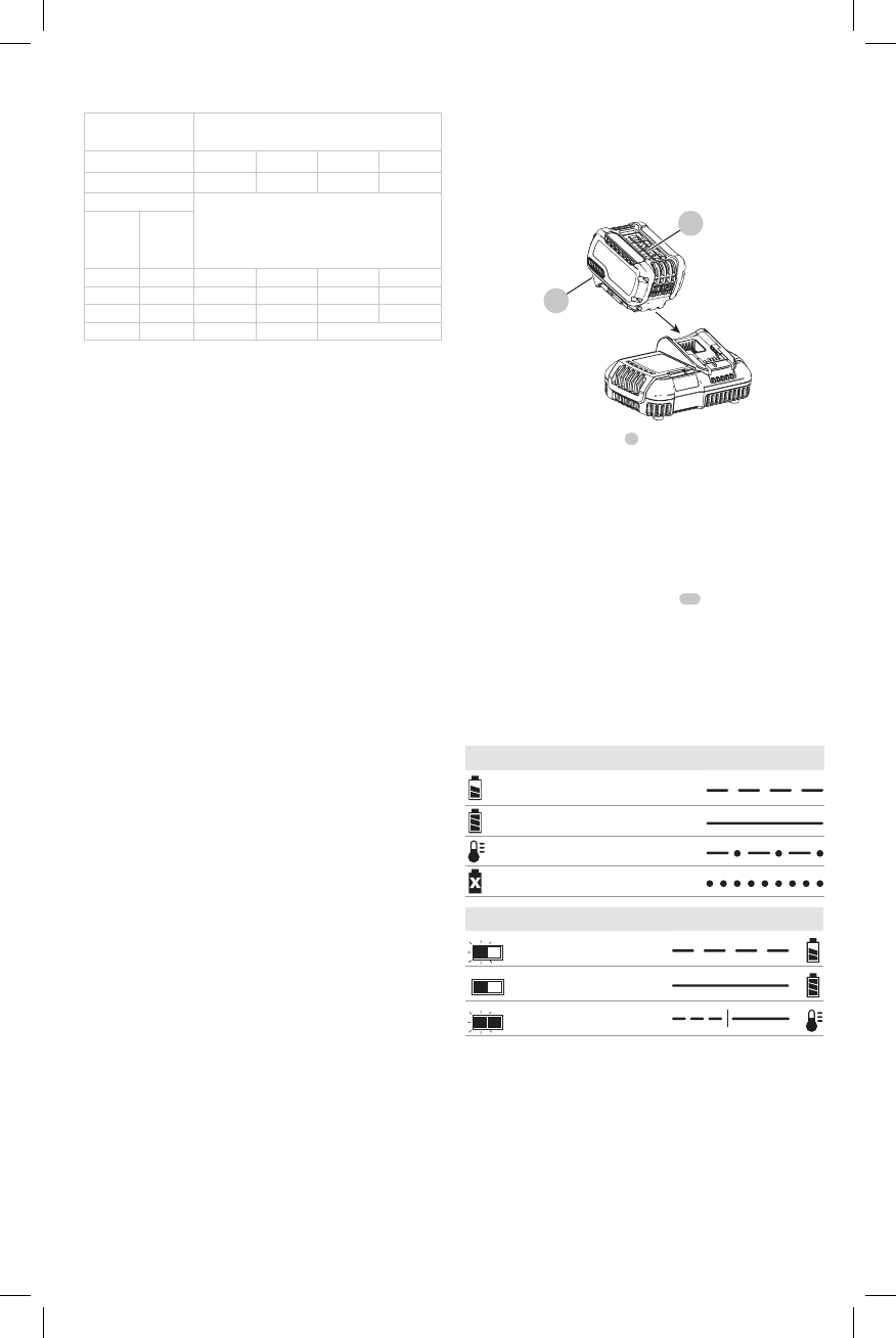“X” indique que le bloc-piles n’est pas compatible avec ce chargeur. Les durées de charge sont approximatives; la durée de