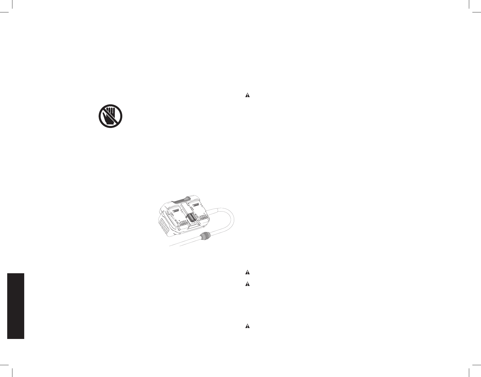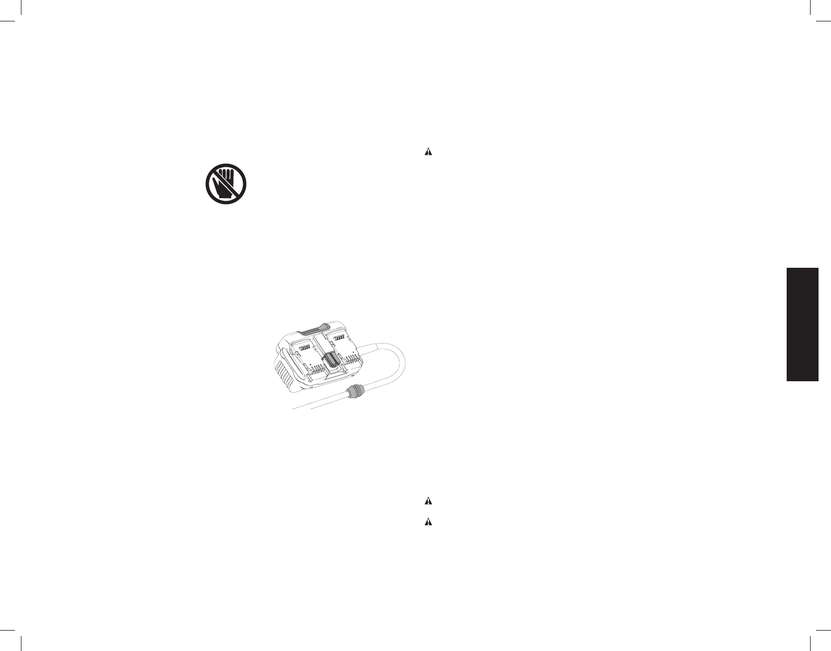 connecting to power source and/or battery pack, picking up or carrying the tool.