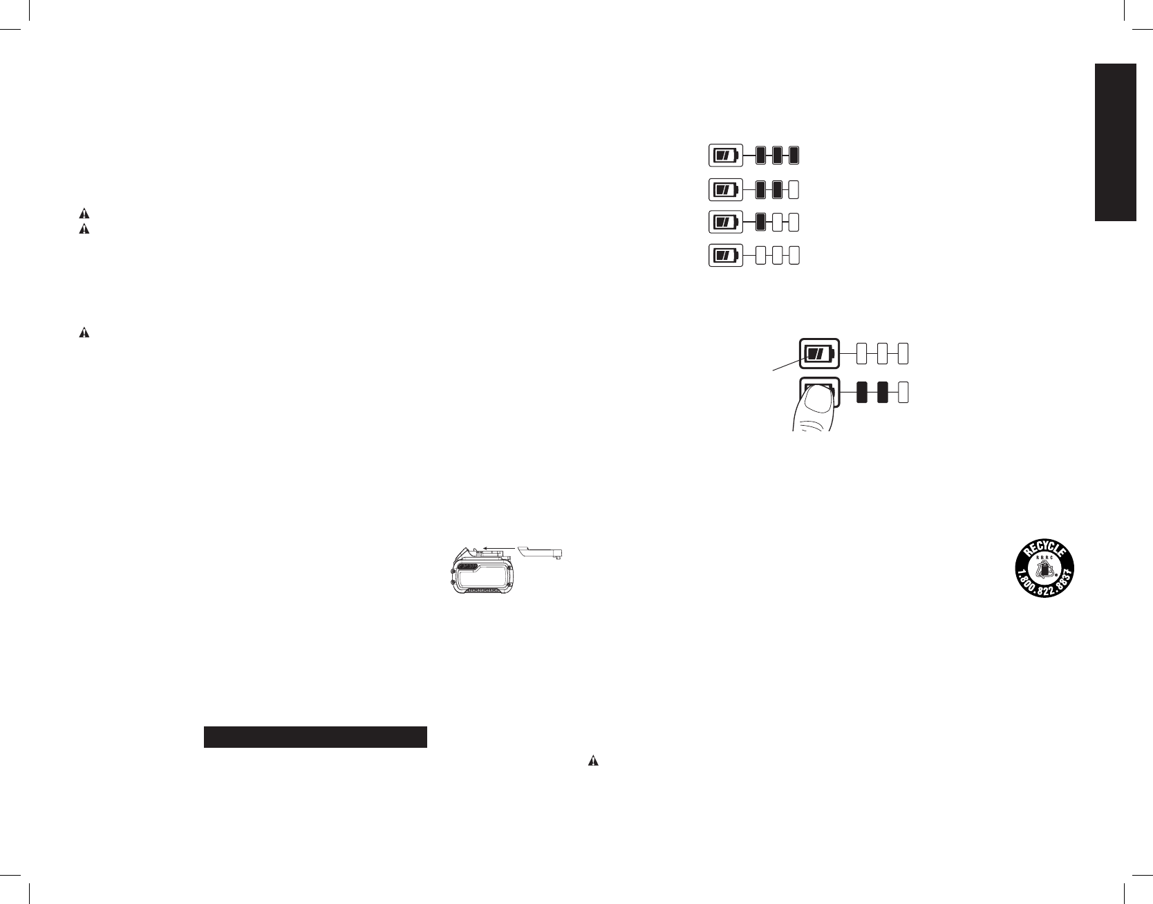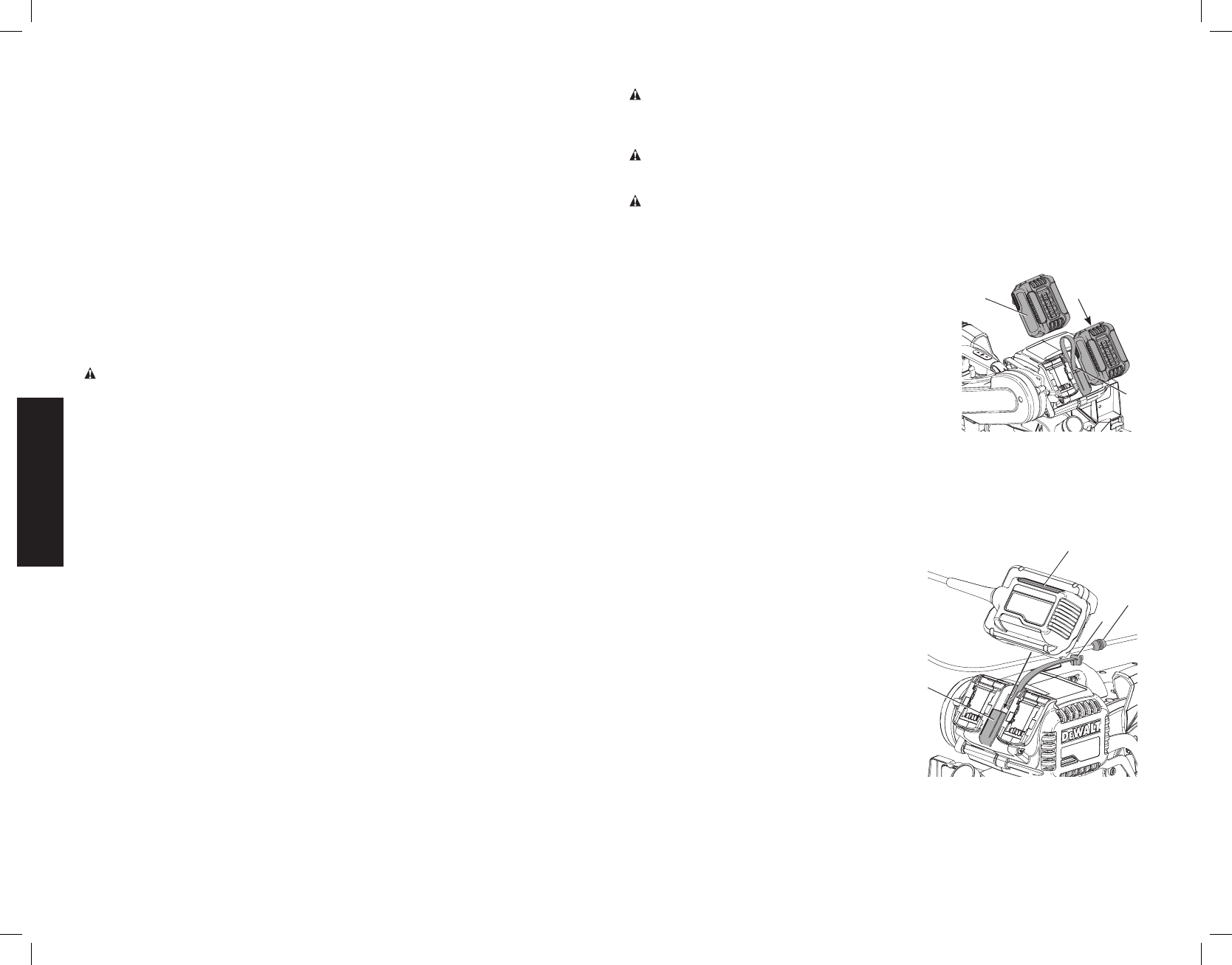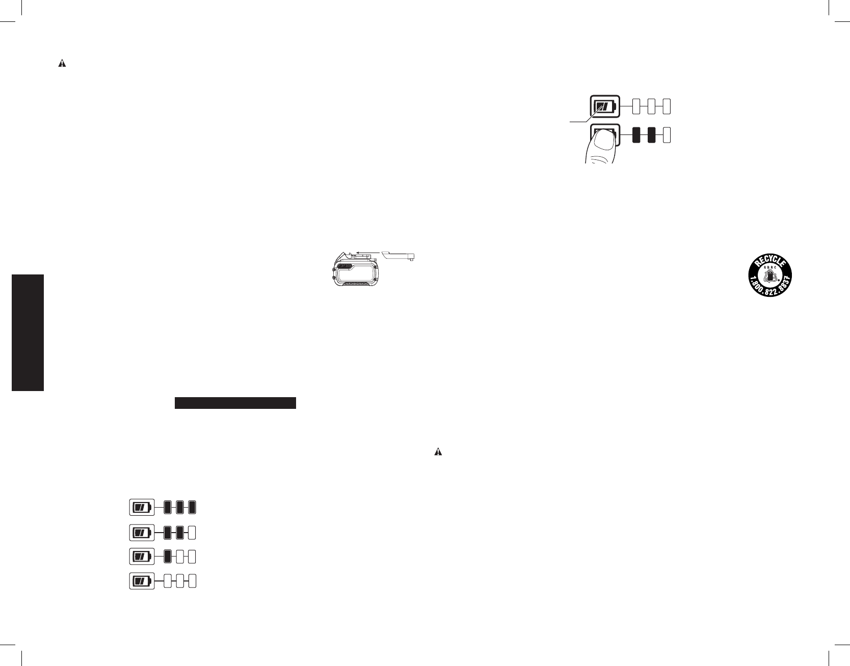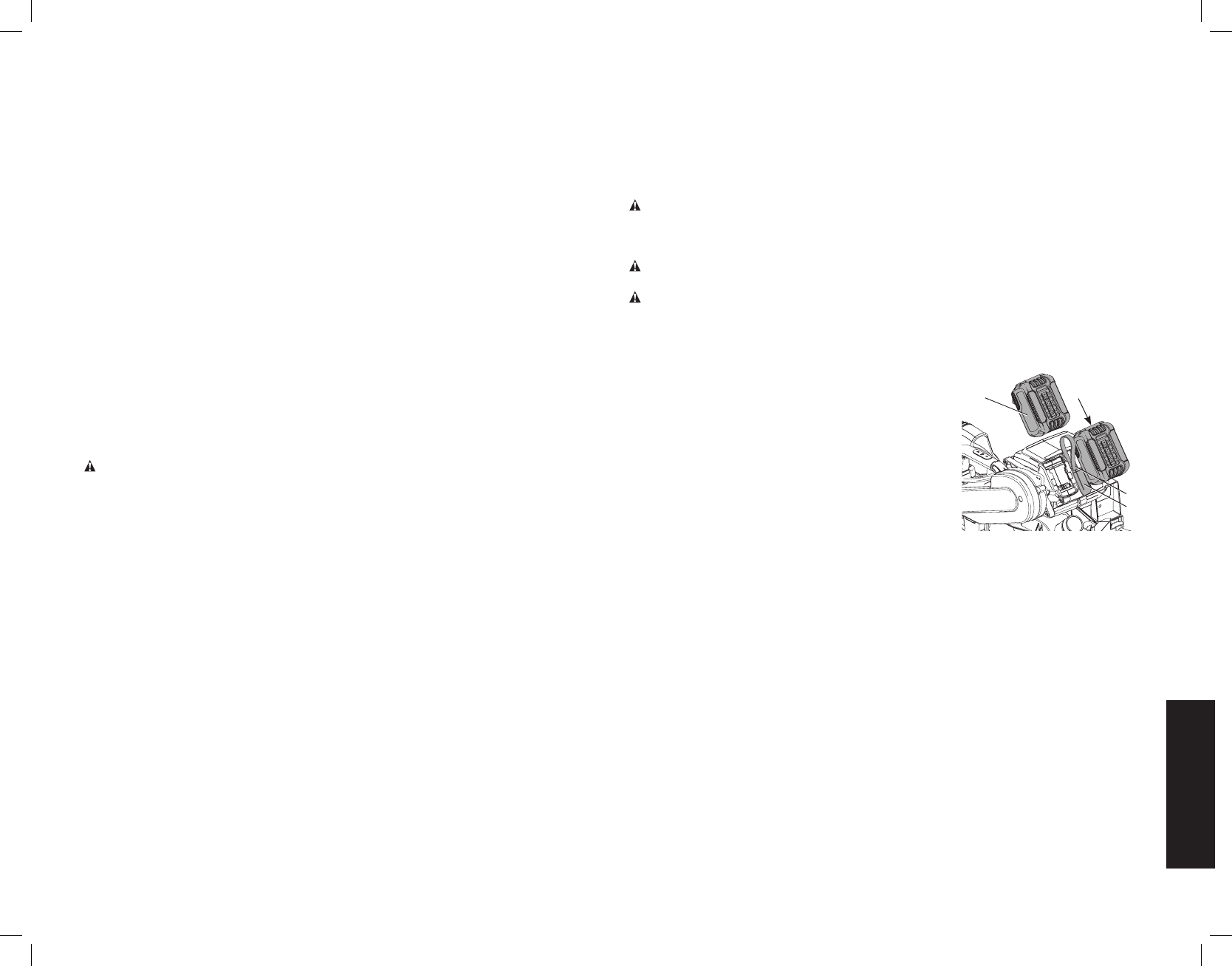 * La tension initiale maximum du bloc-piles (mesurée à vide) est de 20, 60 ou 120 volts. La tension nominale est de 18, 54 ou 108. (120 V Max* se base sur l’utilisation combinée de 2 blocs-piles au lithium ion