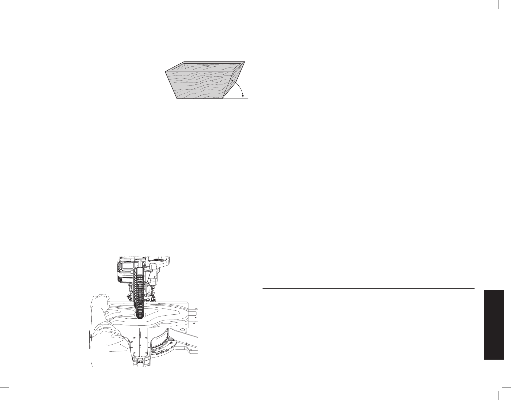 2. La hoja no está en escuadra con el reborde 2. Verifique y regule. Consulte las Ajuste de la escala de inglete en Ajustes.