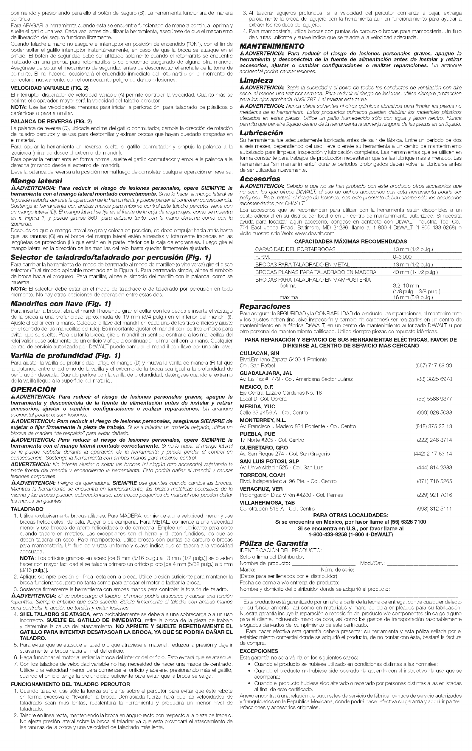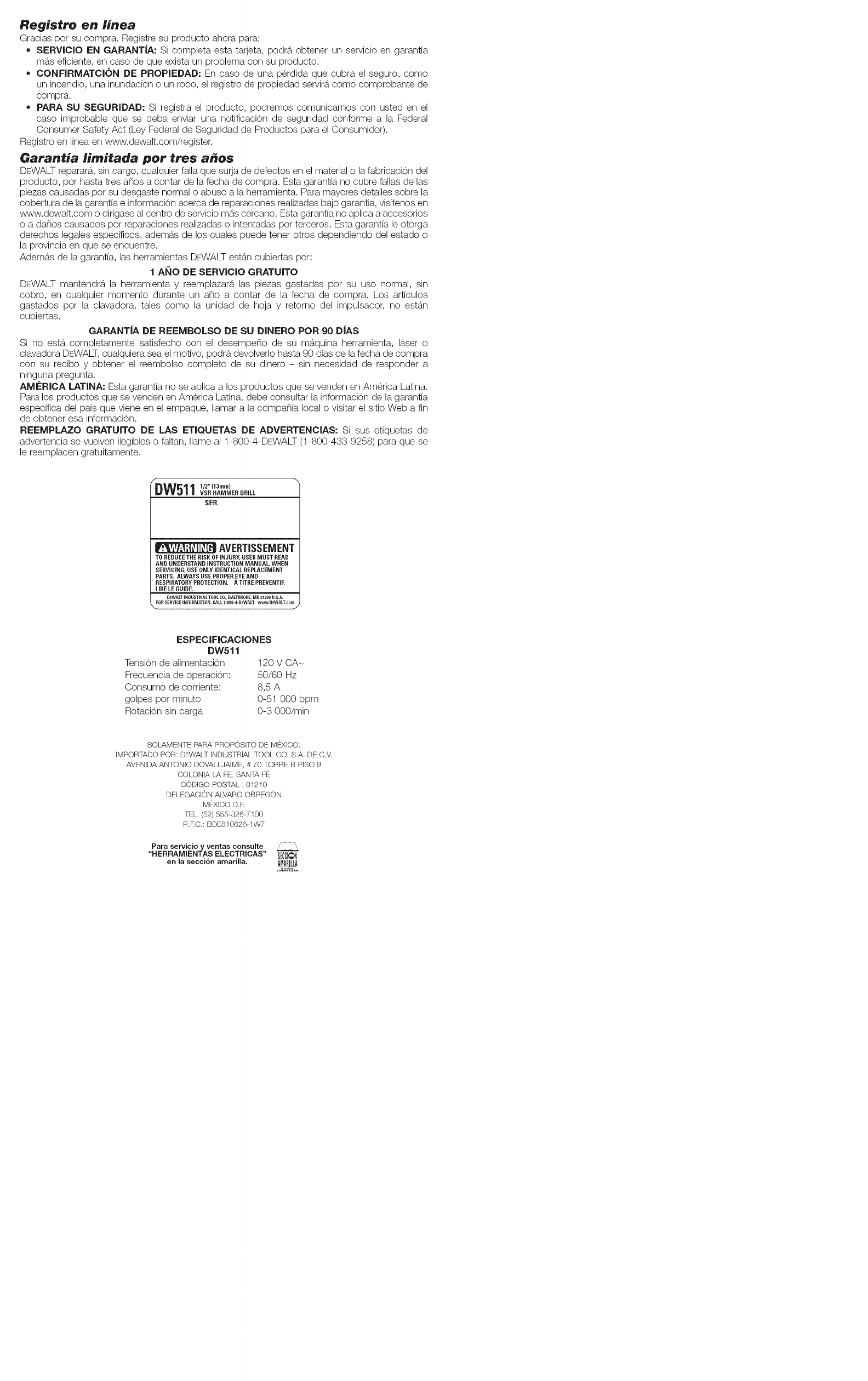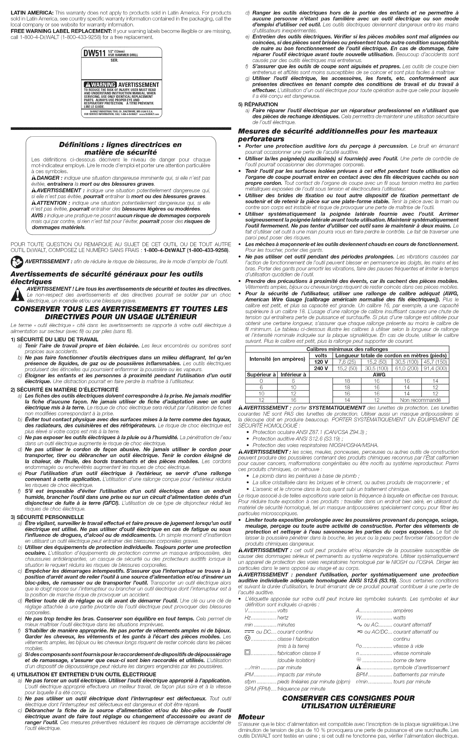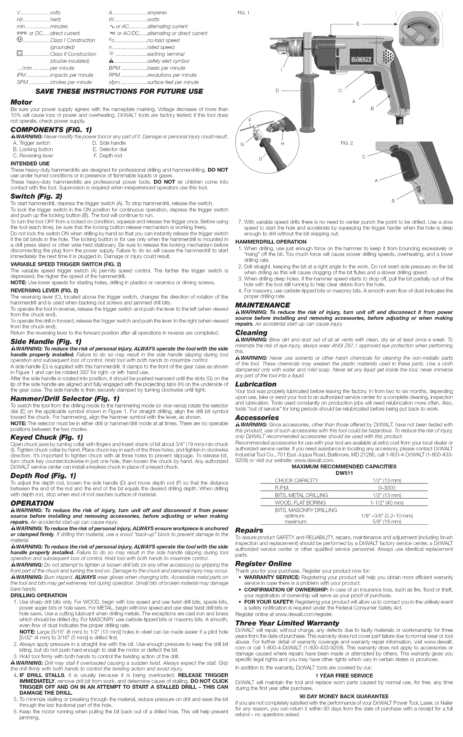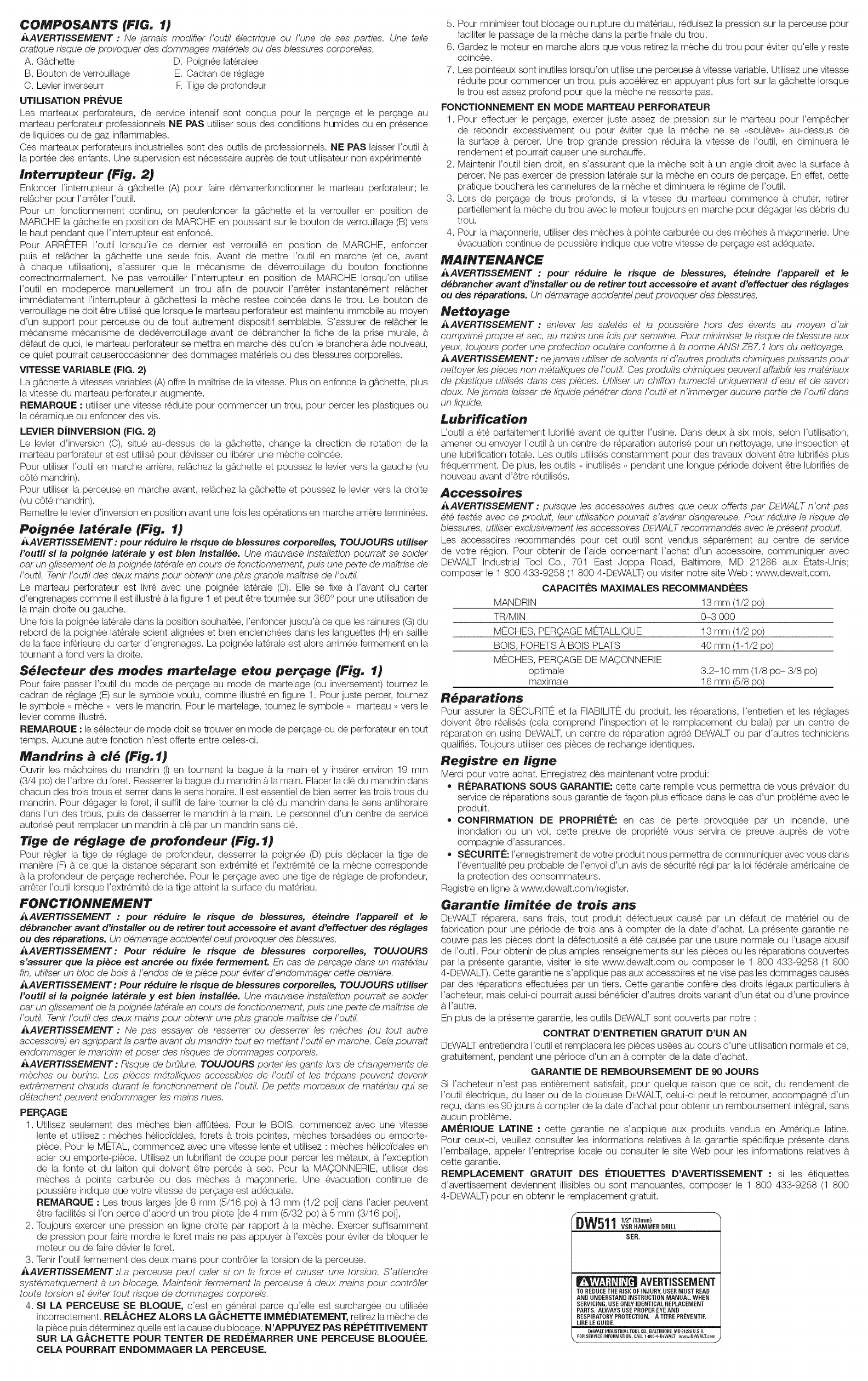 Dewalt DW511 TYPE 5 1603218L User Manual DRILL HAMMER Manuals And Guides