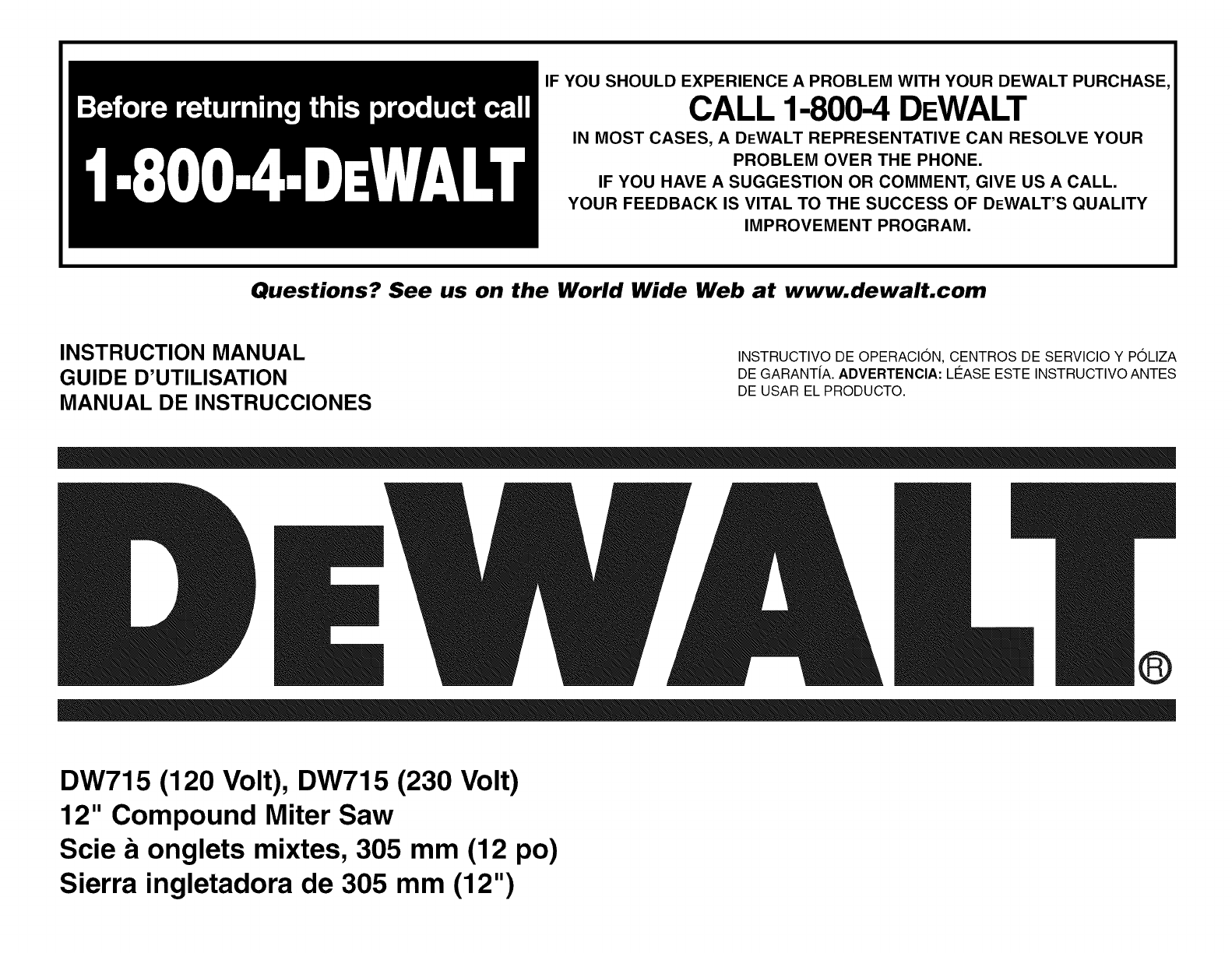 CALL 1-800-4 DEWALT