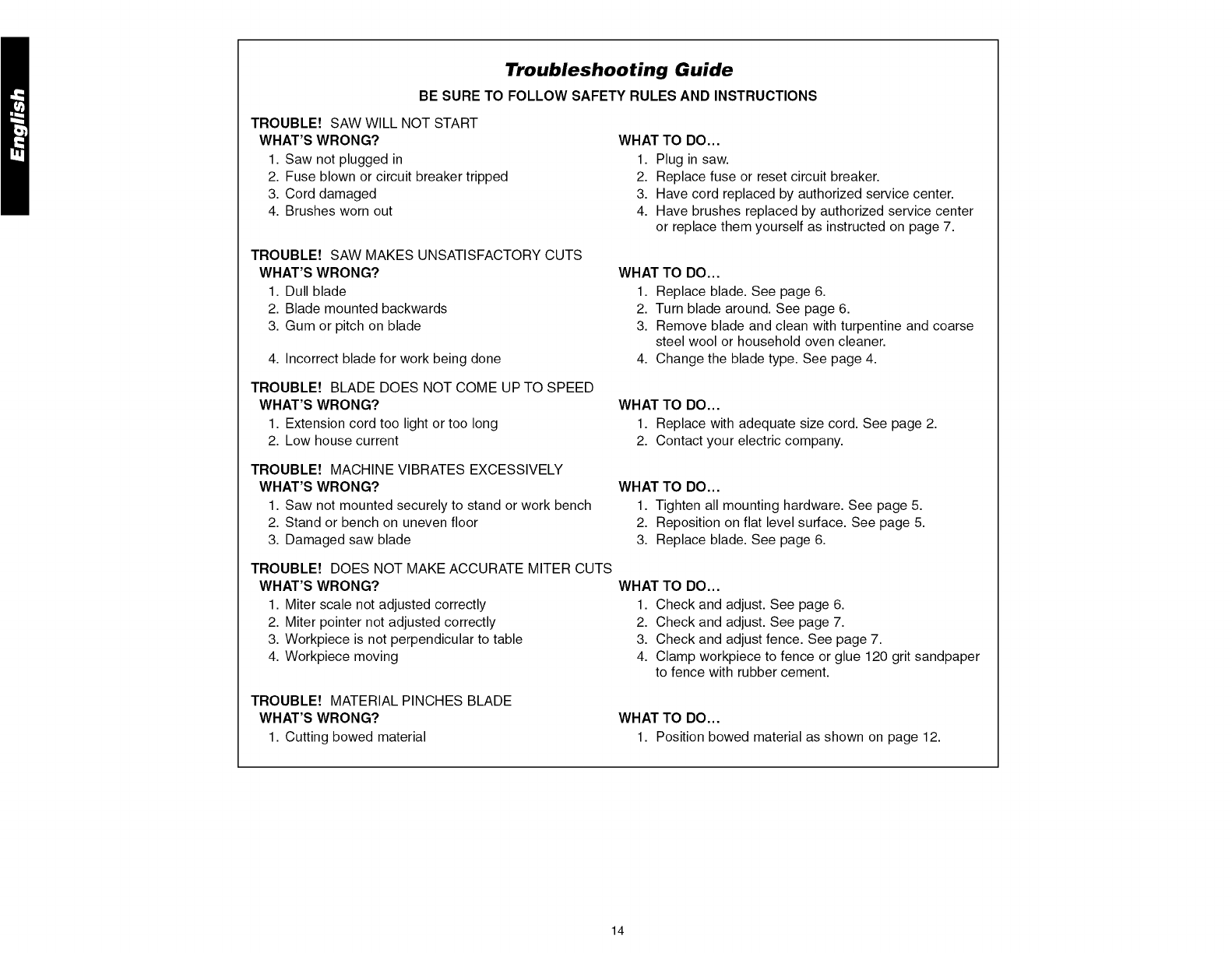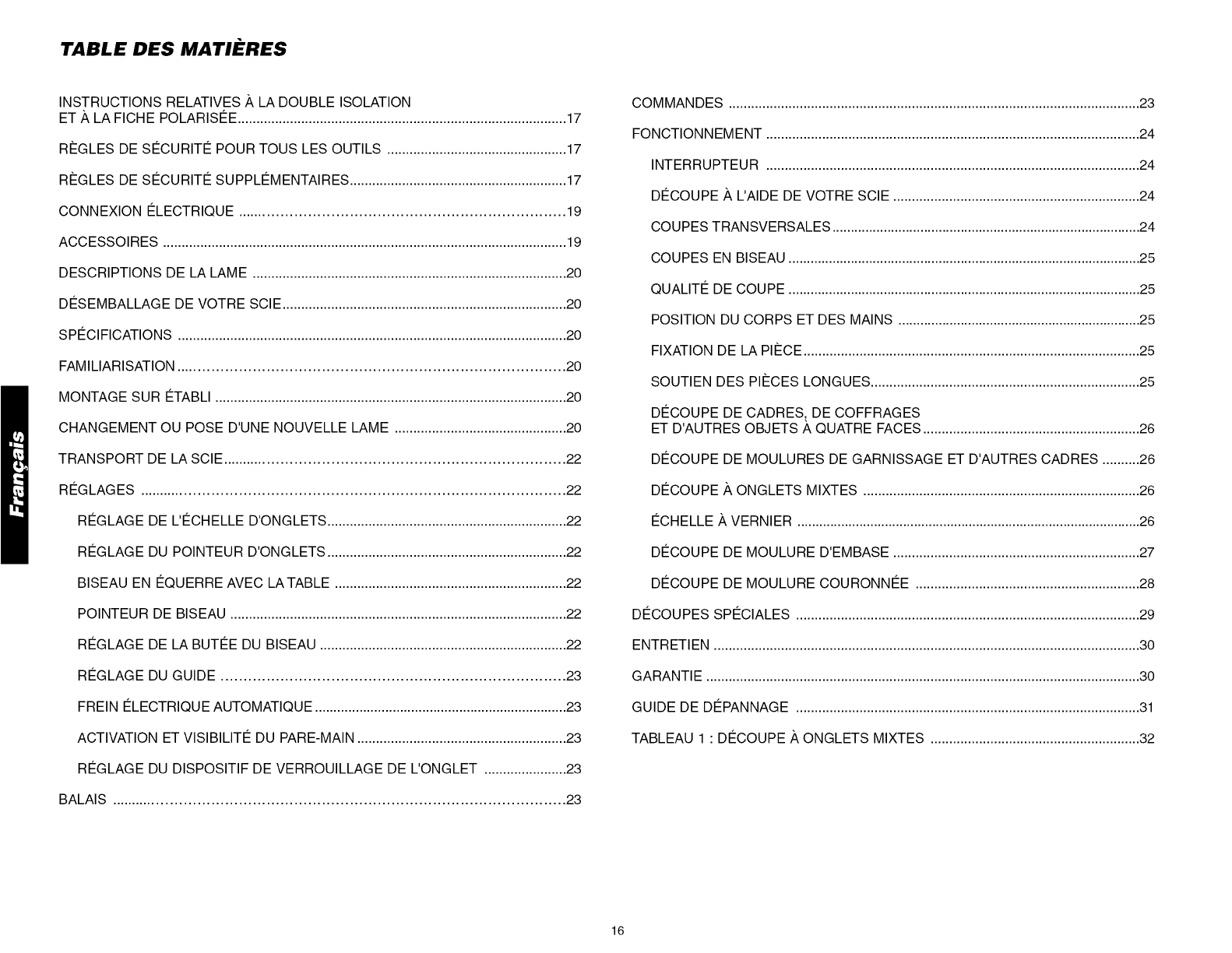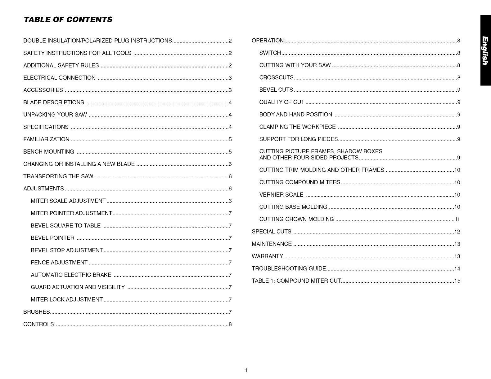 MITER POINTER ADJUSTMENT .............................................................................. 7