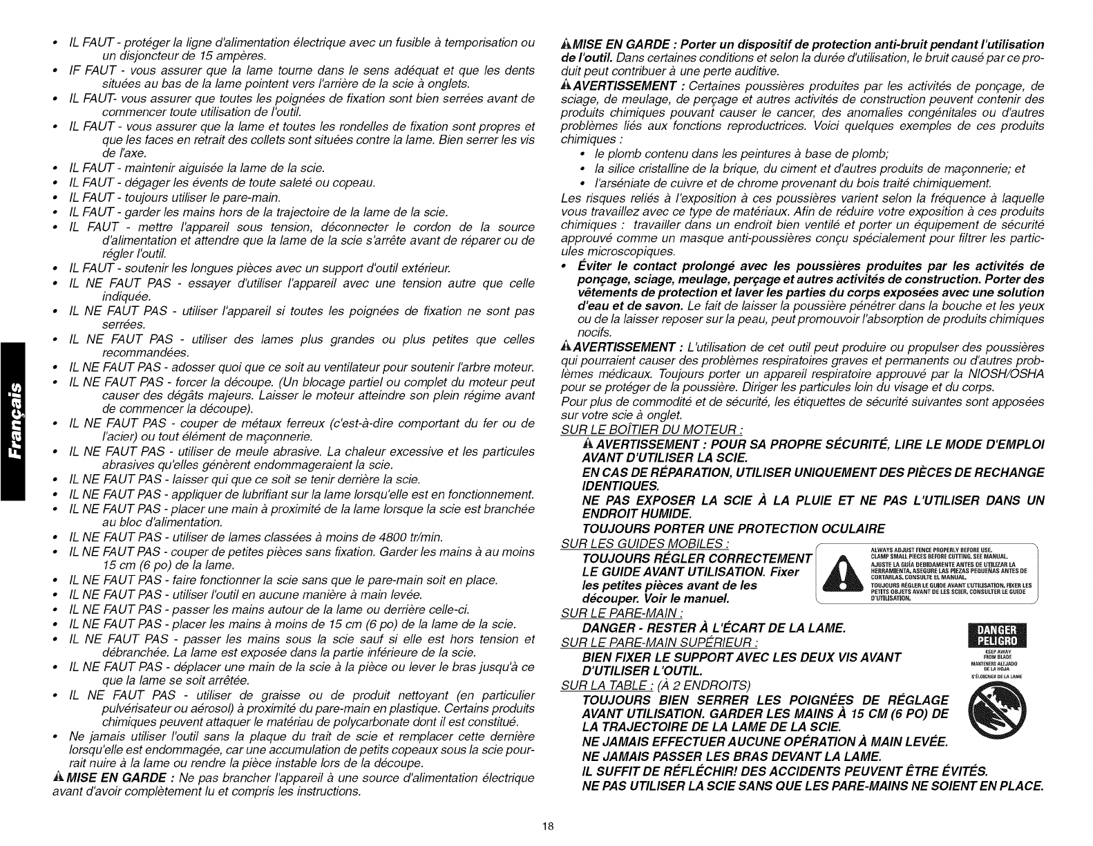 •KEEP GUARD IN PLACE and in working order.