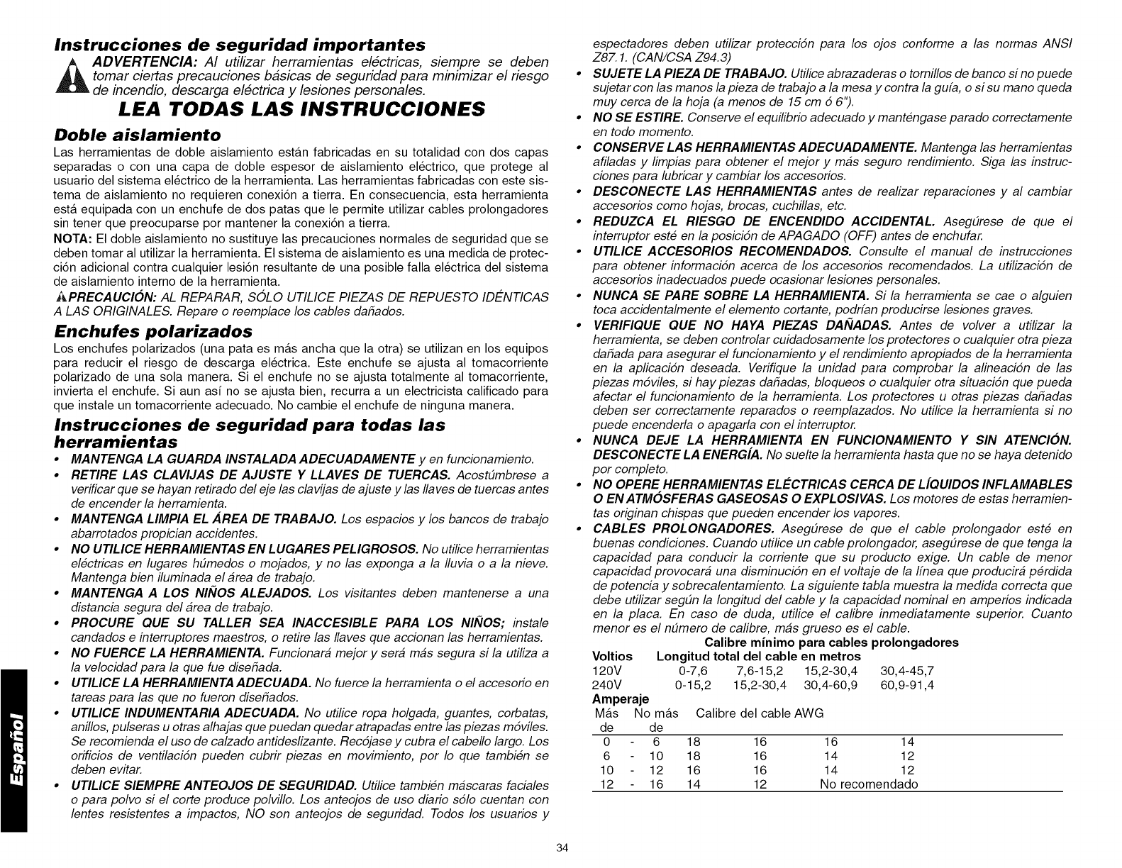 insulation or one double thickness of insulation between you and the tool's electrical sys-