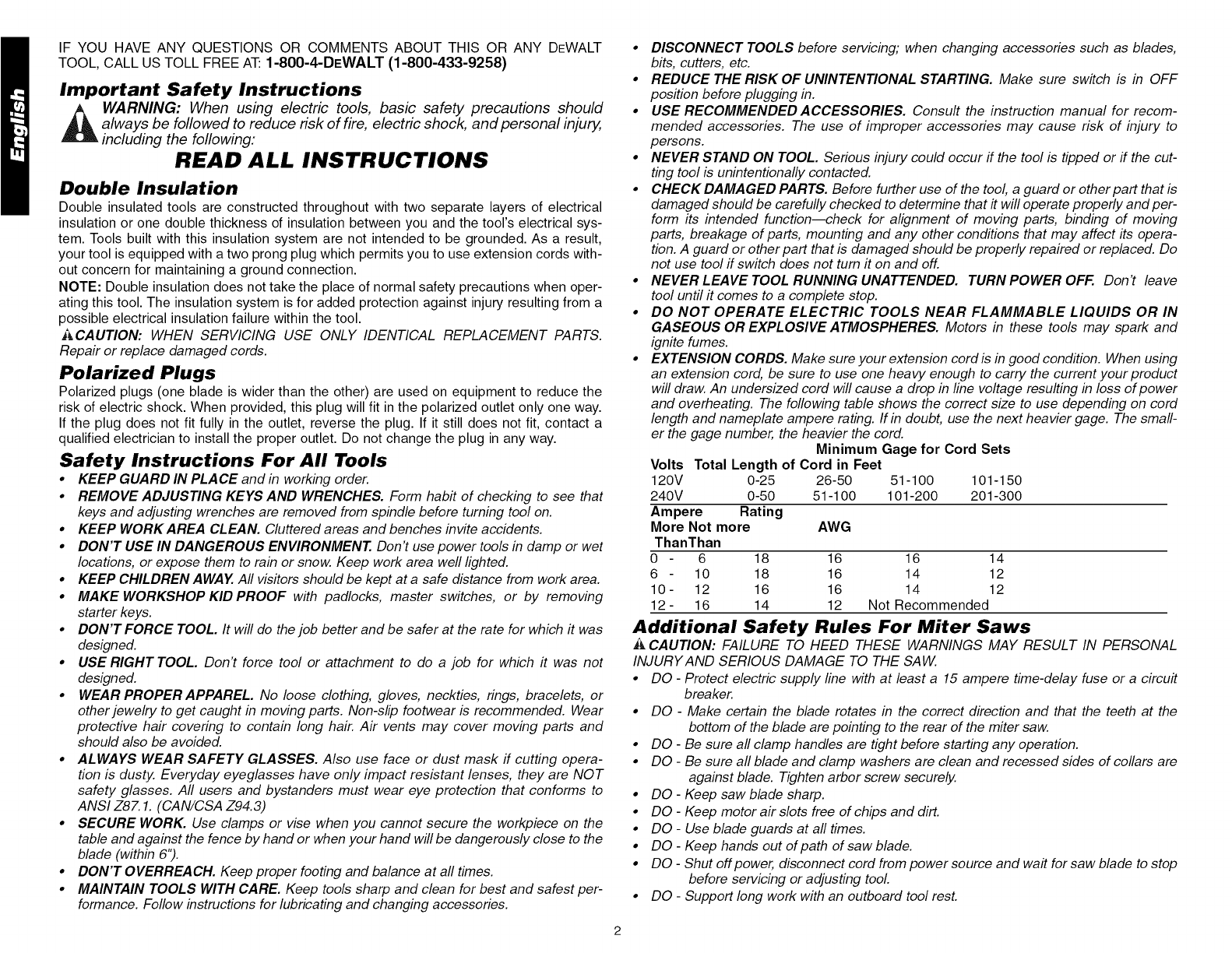 SAFETY INSTRUCTIONS FOR ALL TOOLS ................................................................ 2