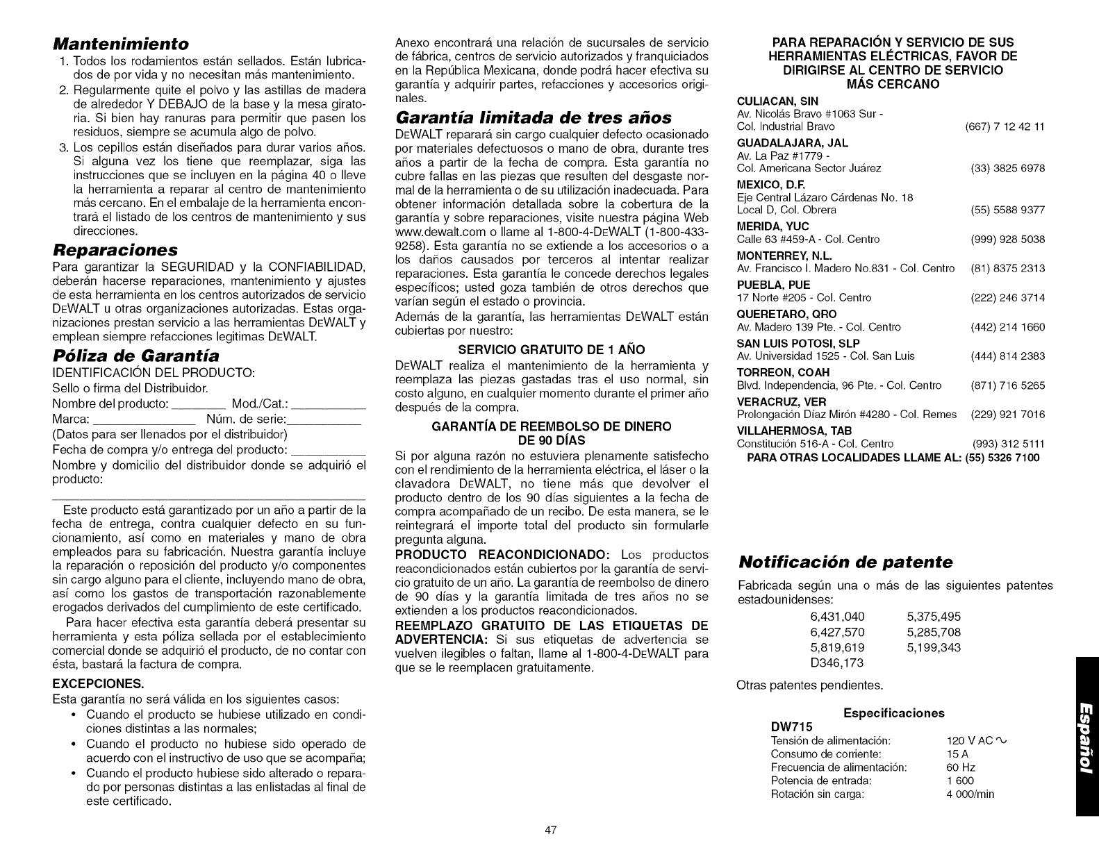 DW715 (120 Volt), DW715 (230 Volt)