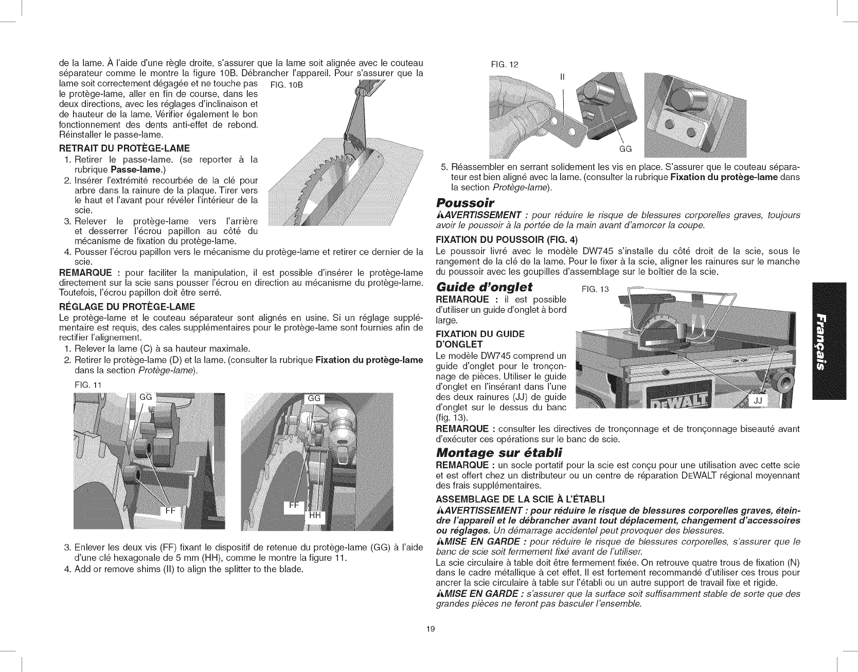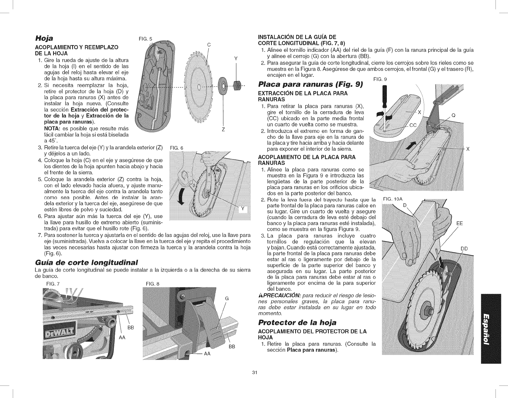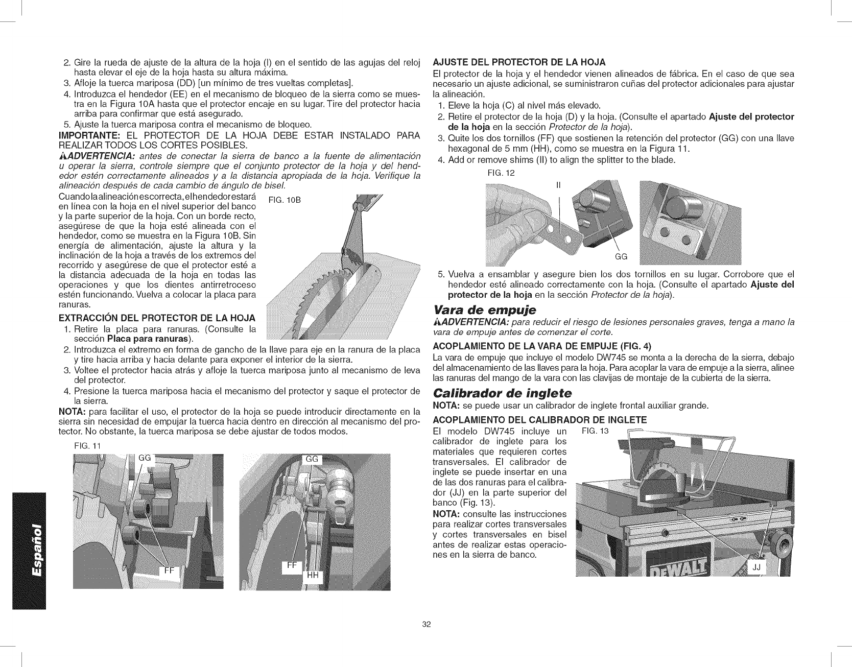 AROUND OR OVERSAW BLADE.SECURELYMOUNT SAW BLADE HEPOBEOPERATING.NEVERREMOVEJAMMED