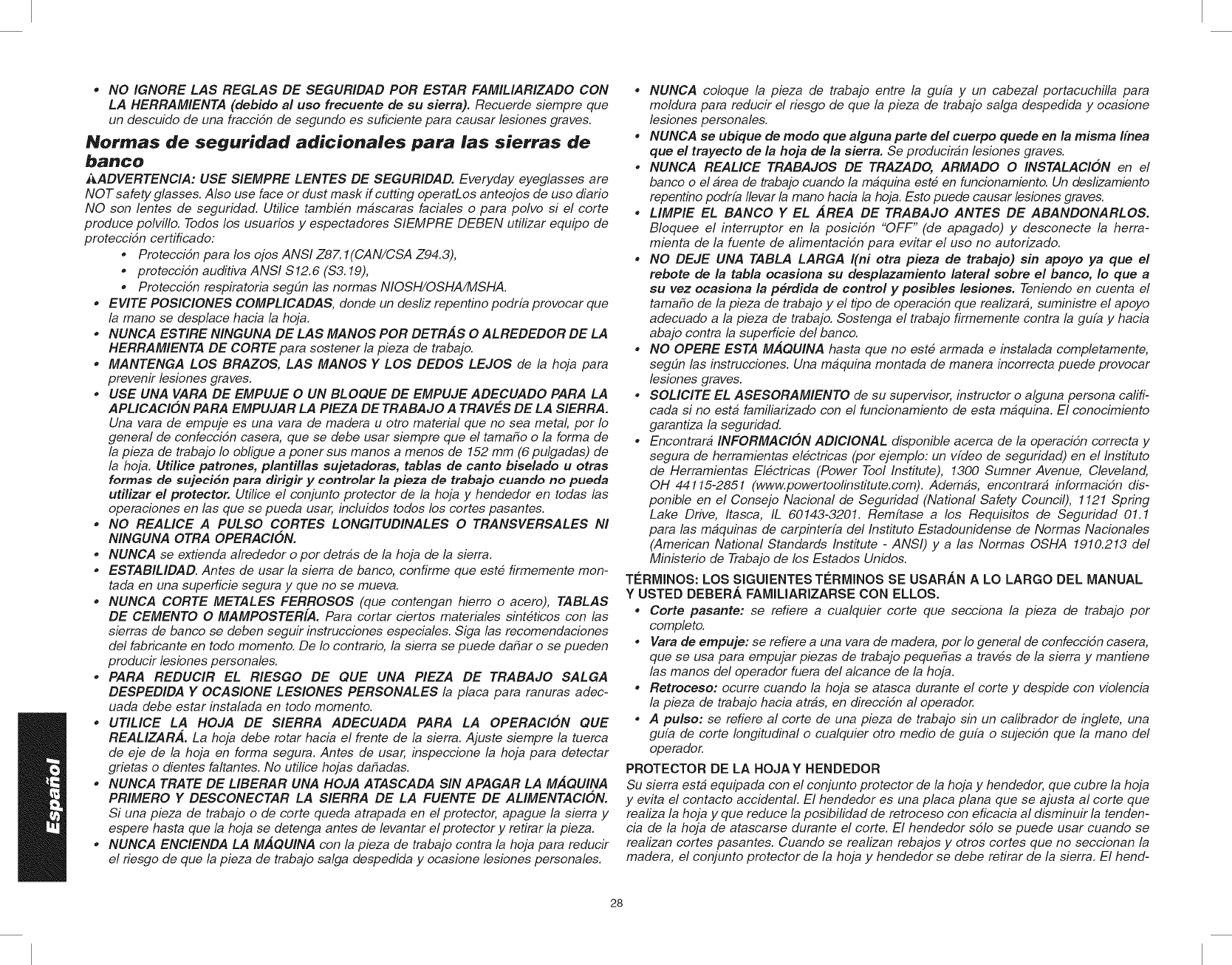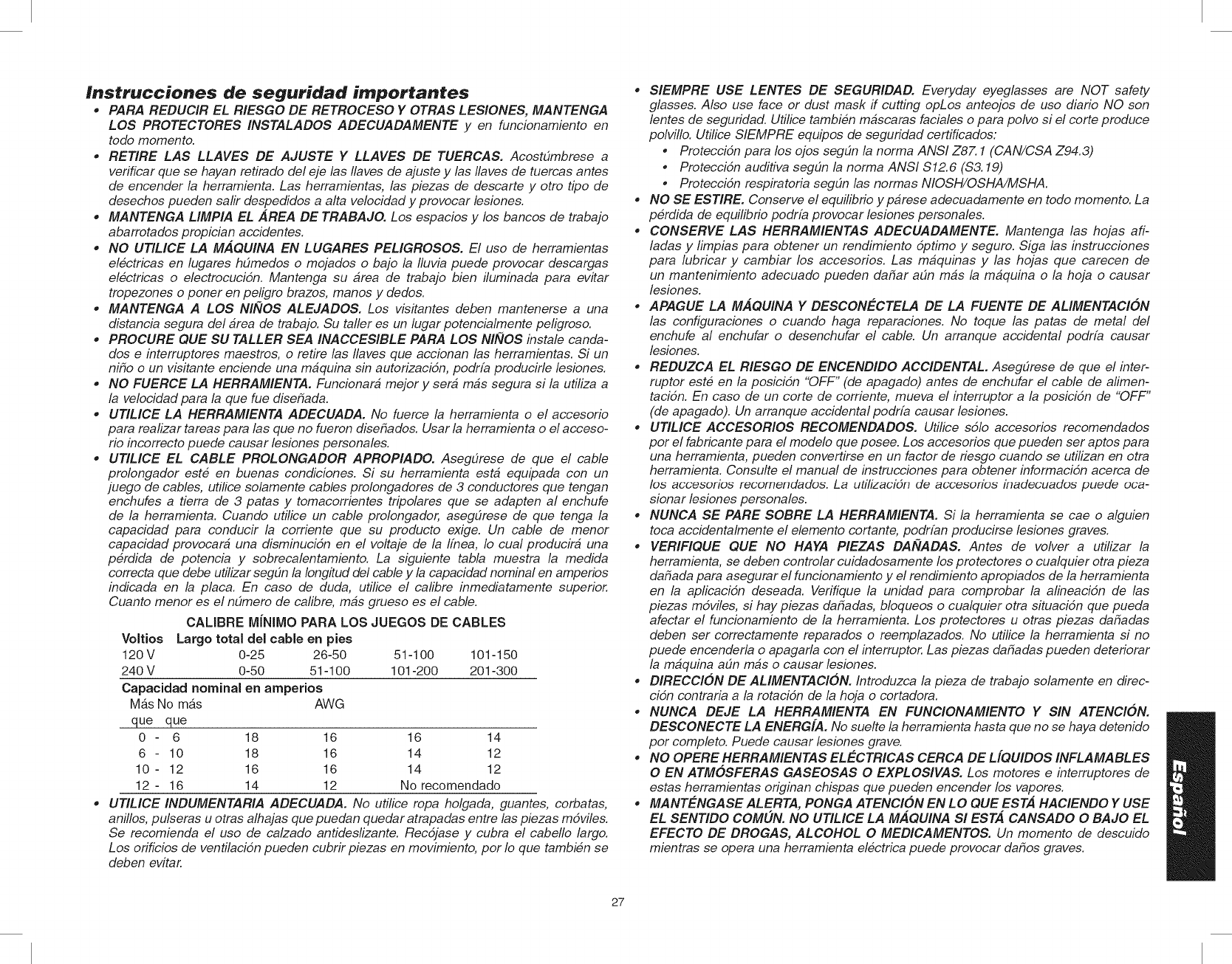 CONTAIN LONGHAIR.KEEPHANDS OUT OFTHE LINEOFSAW BLADE" USE EXTRA