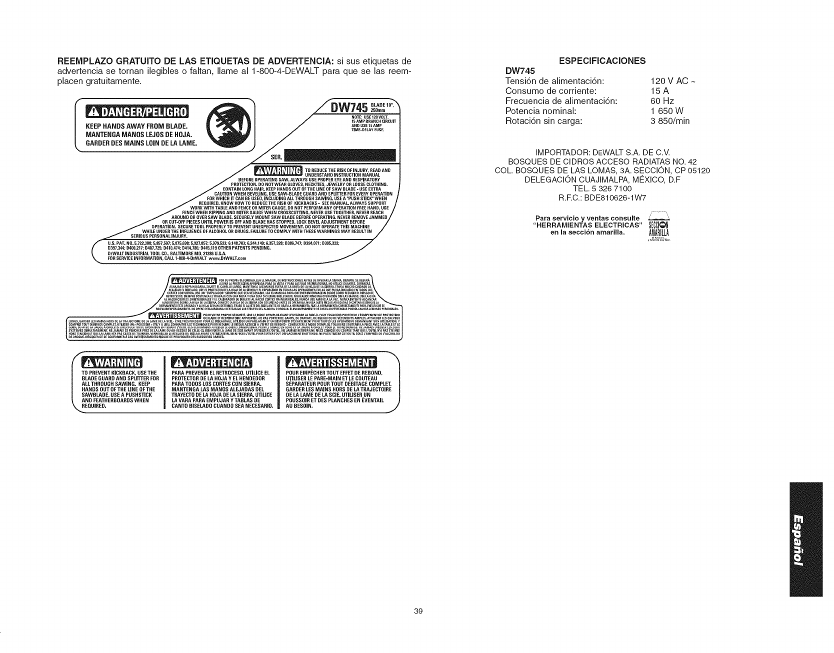(JAN07) FormNo.650150-00 DW745 Copyright©2006,2007DEWALT