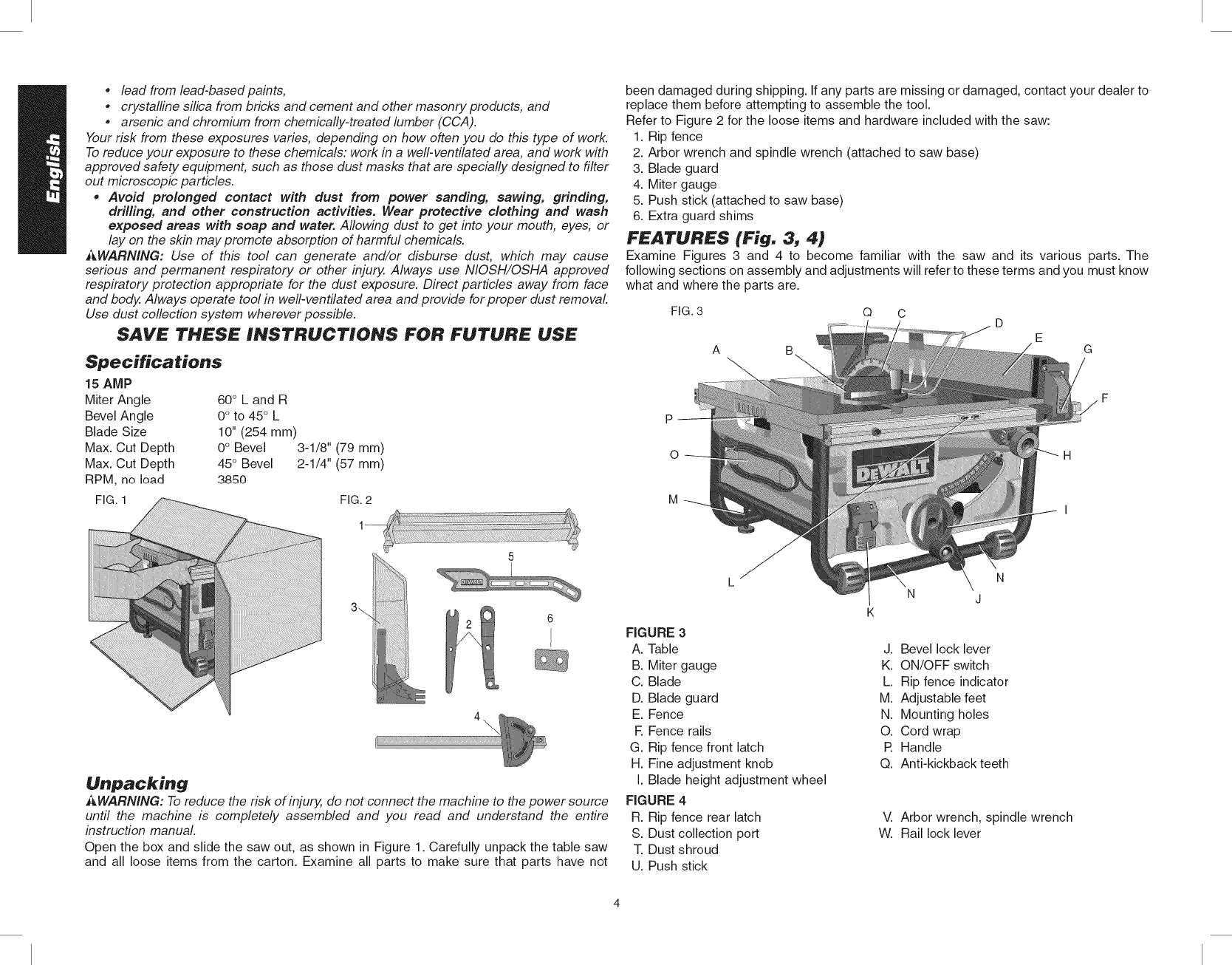 Dewalt DW745 TYPE 1 User Manual TABLE SAW Manuals And Guides 1305012L