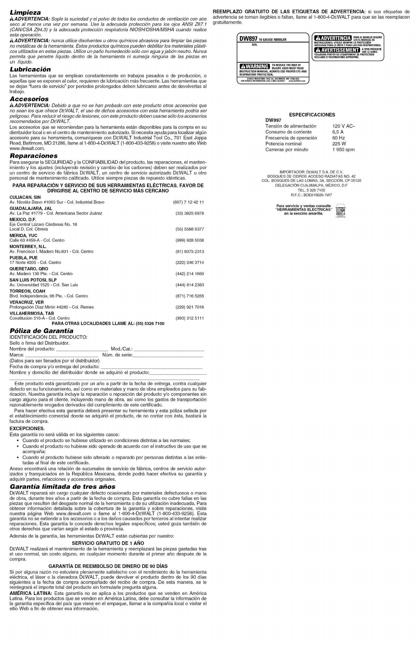 IMPORTADOR: DEWALT S.A. DE C.V.