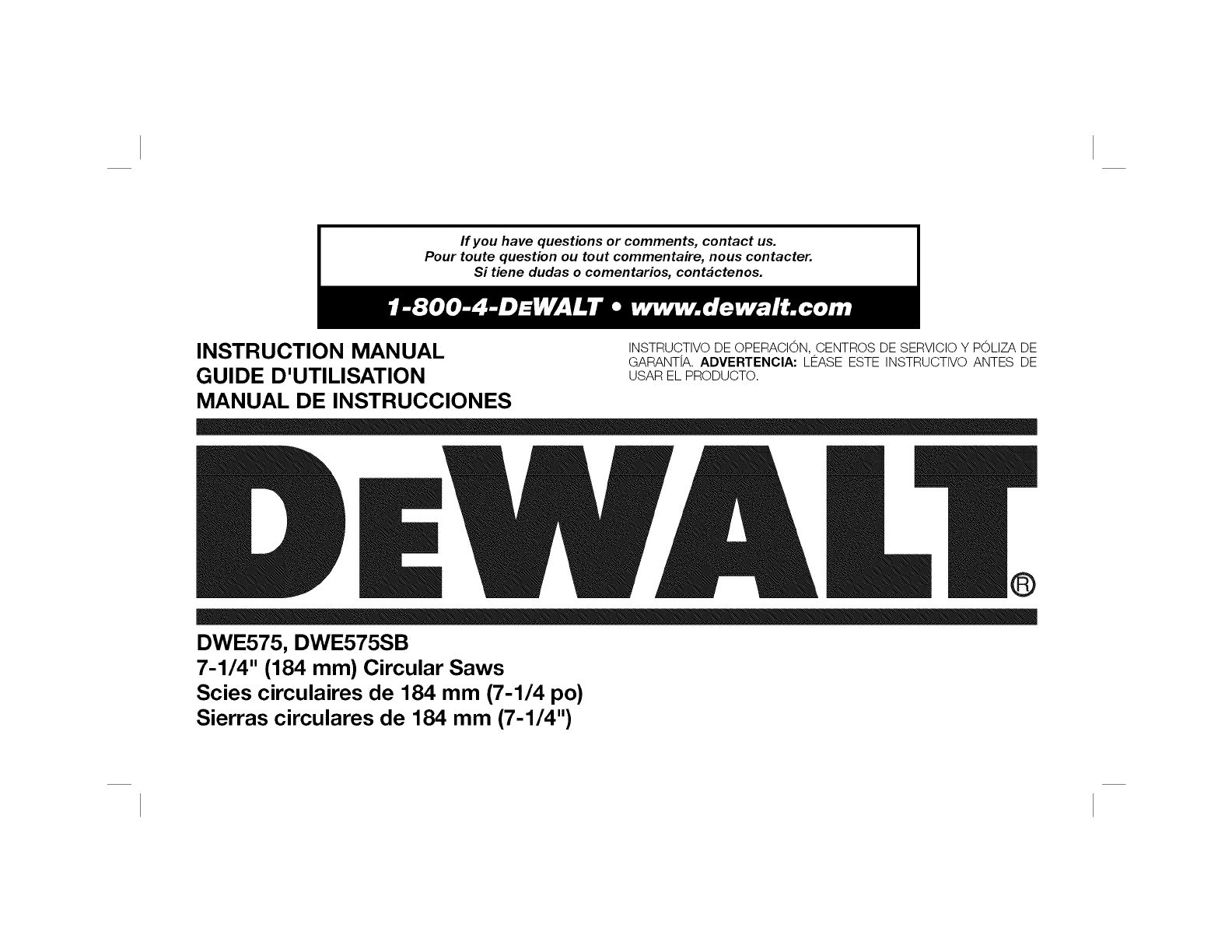 User Manual: Dewalt DWE575 TYPE1 DWE575 TYPE1 DEWALT SAW CIRCULAR - Manuals and Guides View the owners manual for your DEWALT SAW CIRCULAR #DWE575TYPE1. Home:Tool Parts:Dewalt Parts:Dewalt SAW CIRCULAR Manual