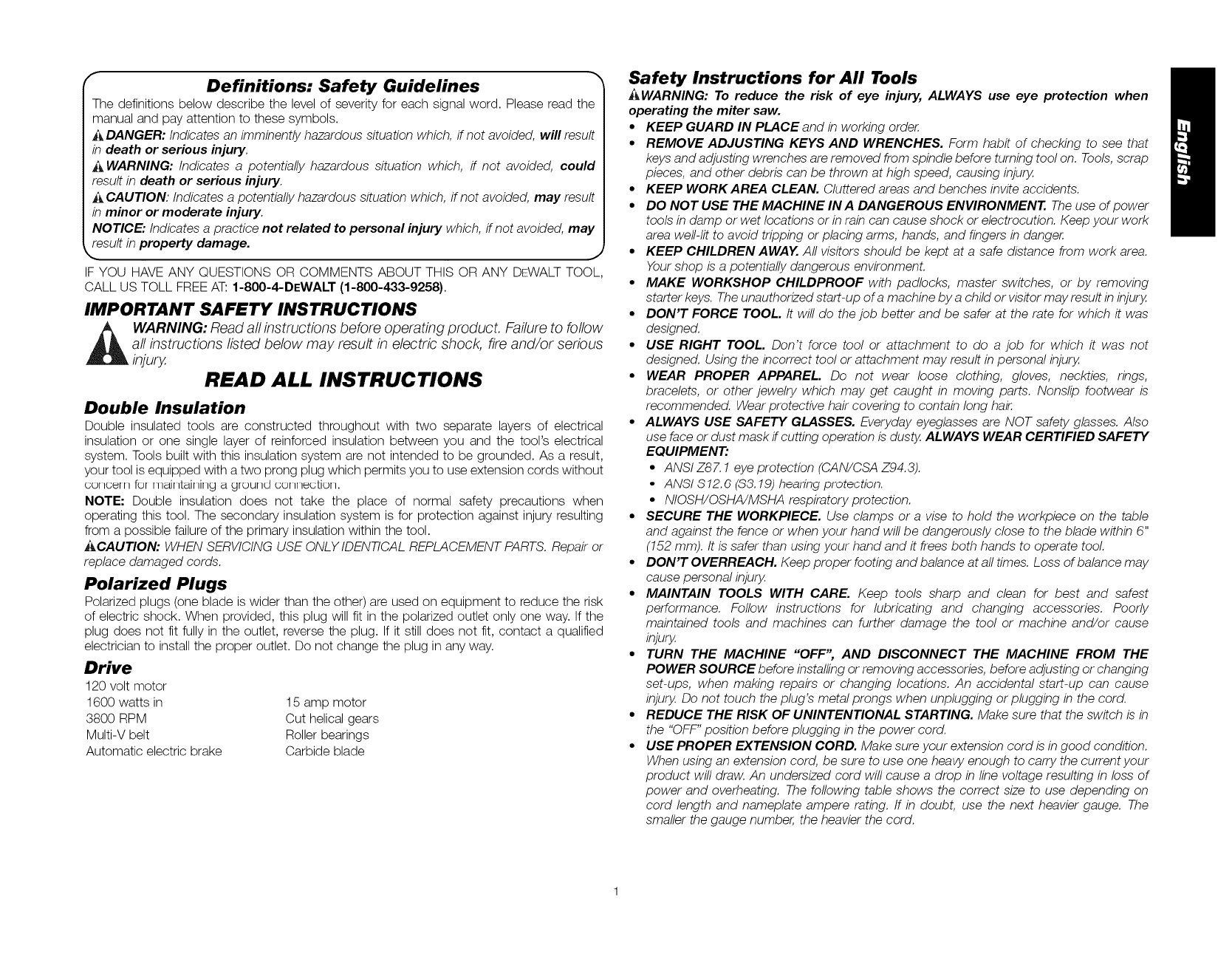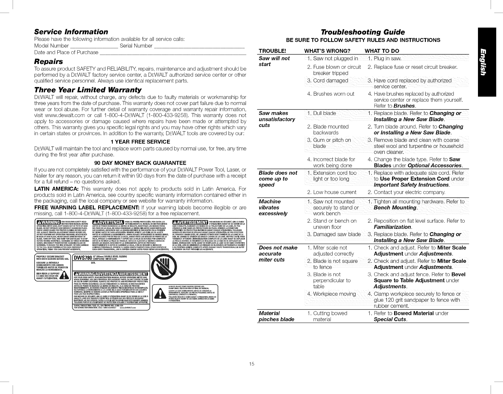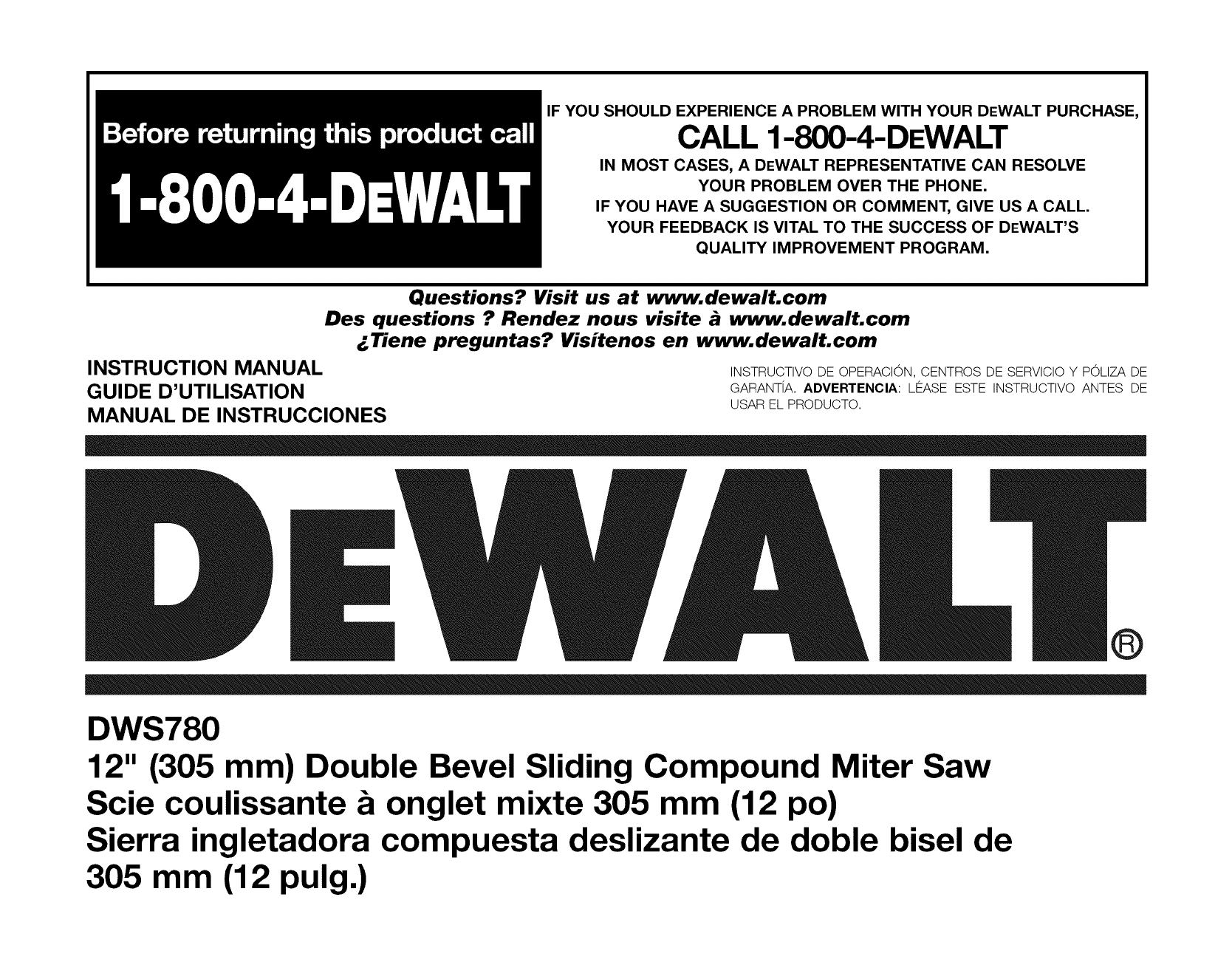 Dewalt DWS780 TYPE 20 User Manual MITER SAW Manuals And Guides 1403106L