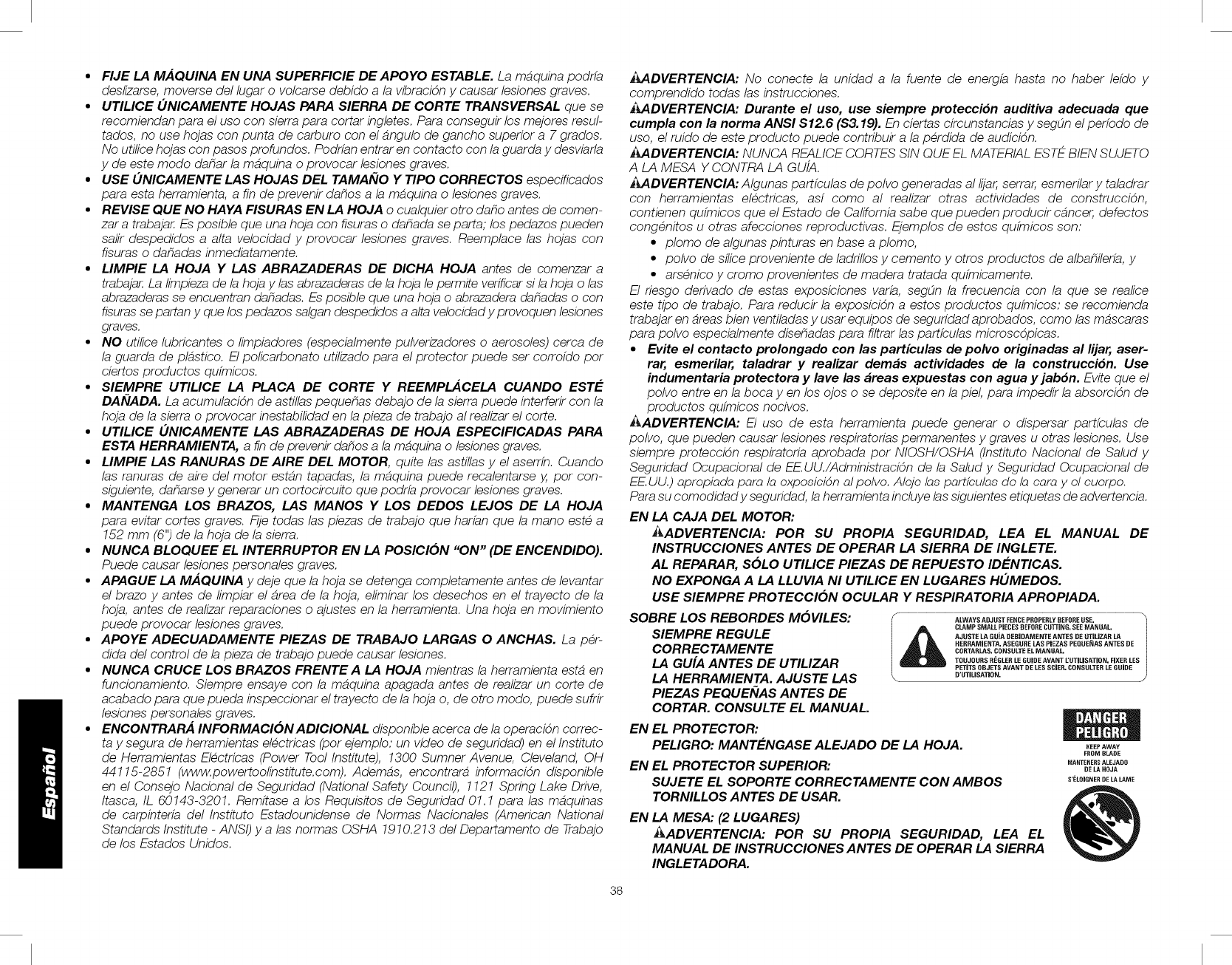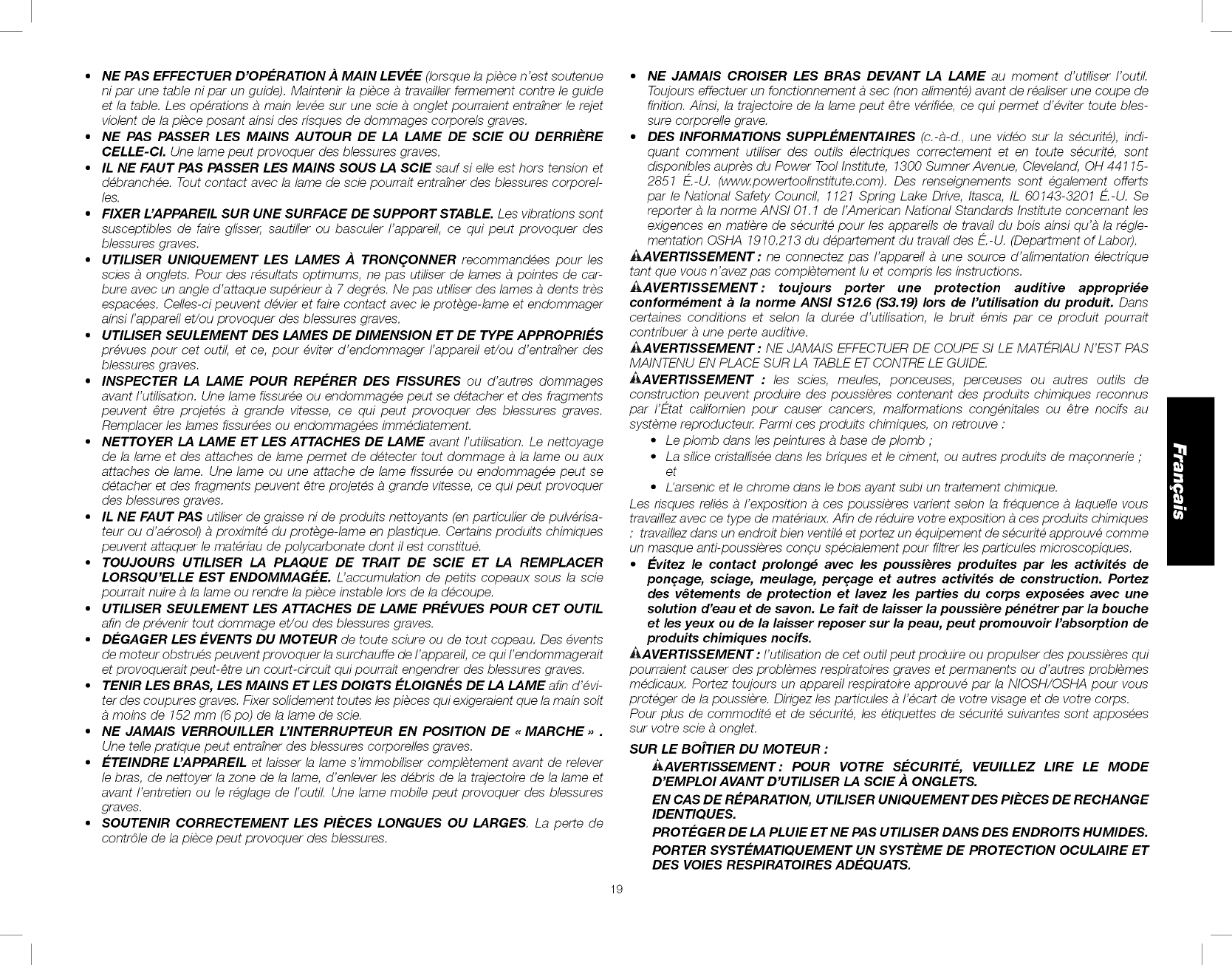 use face or dust mask if cutting operation is dusty. ALWAYS WEAR CERTIFIED SAFETY