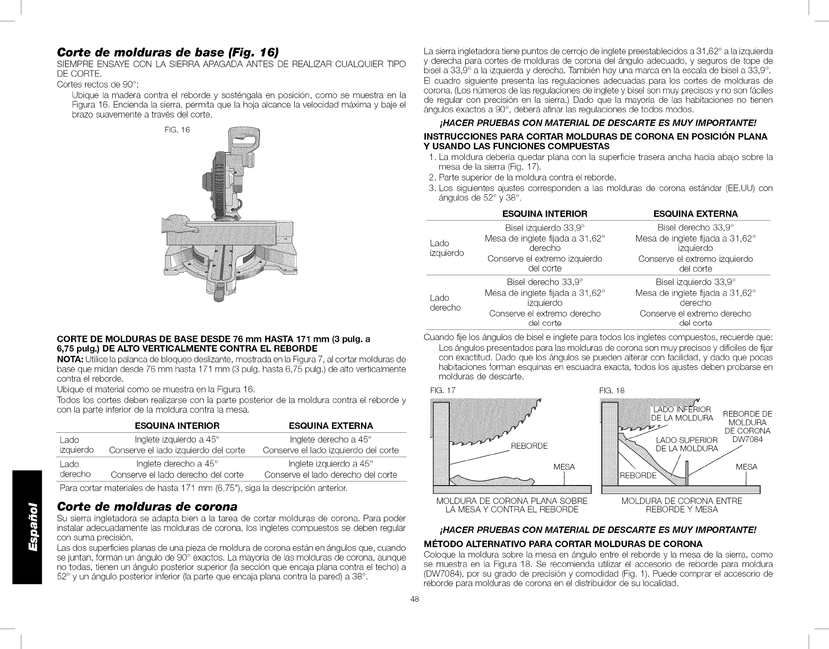 TABLA 1: CORTE DE INGLETE COMPUESTO