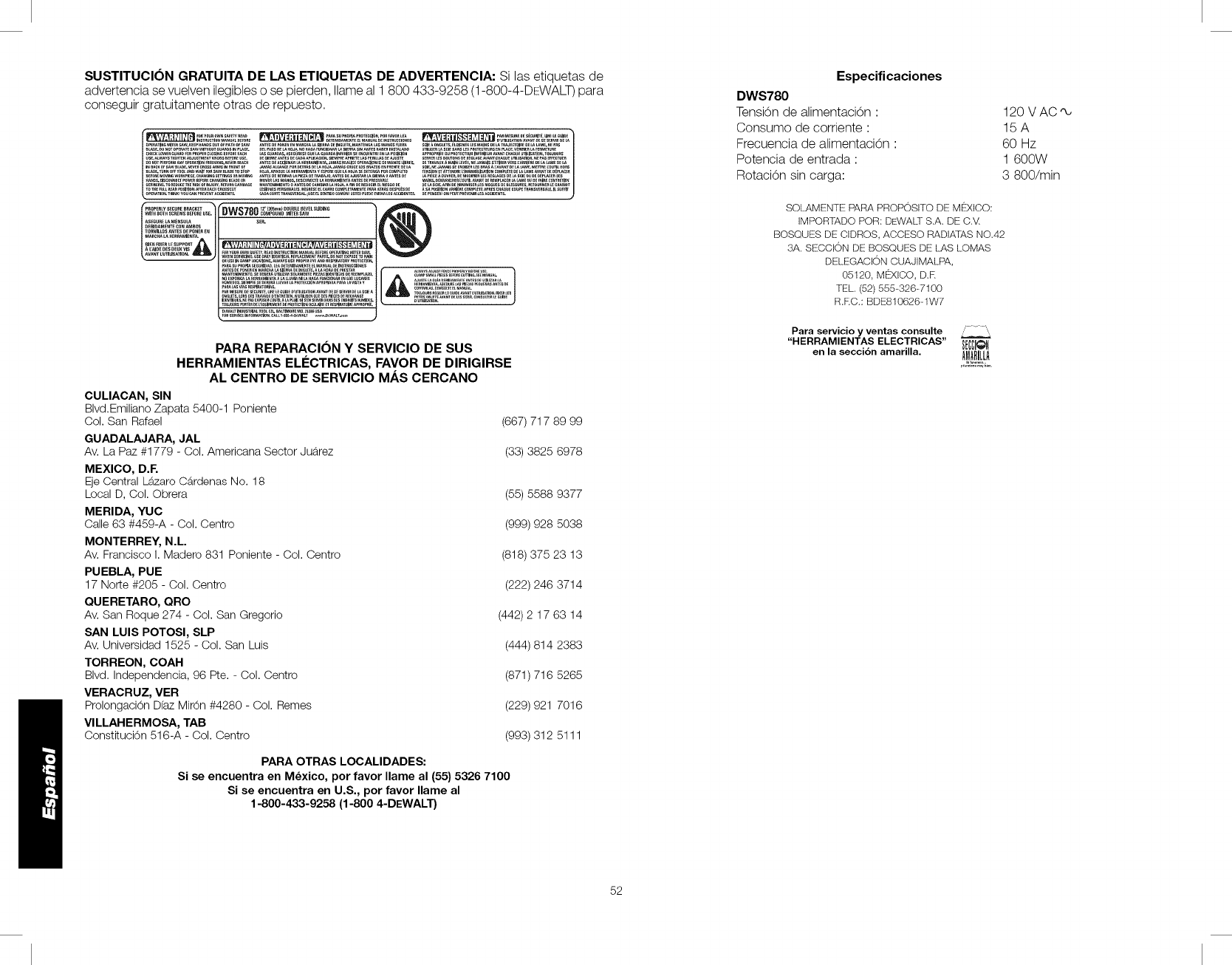 (JUN12) Part No. N141269 DWS780 Copyright © 2012 DEWALT