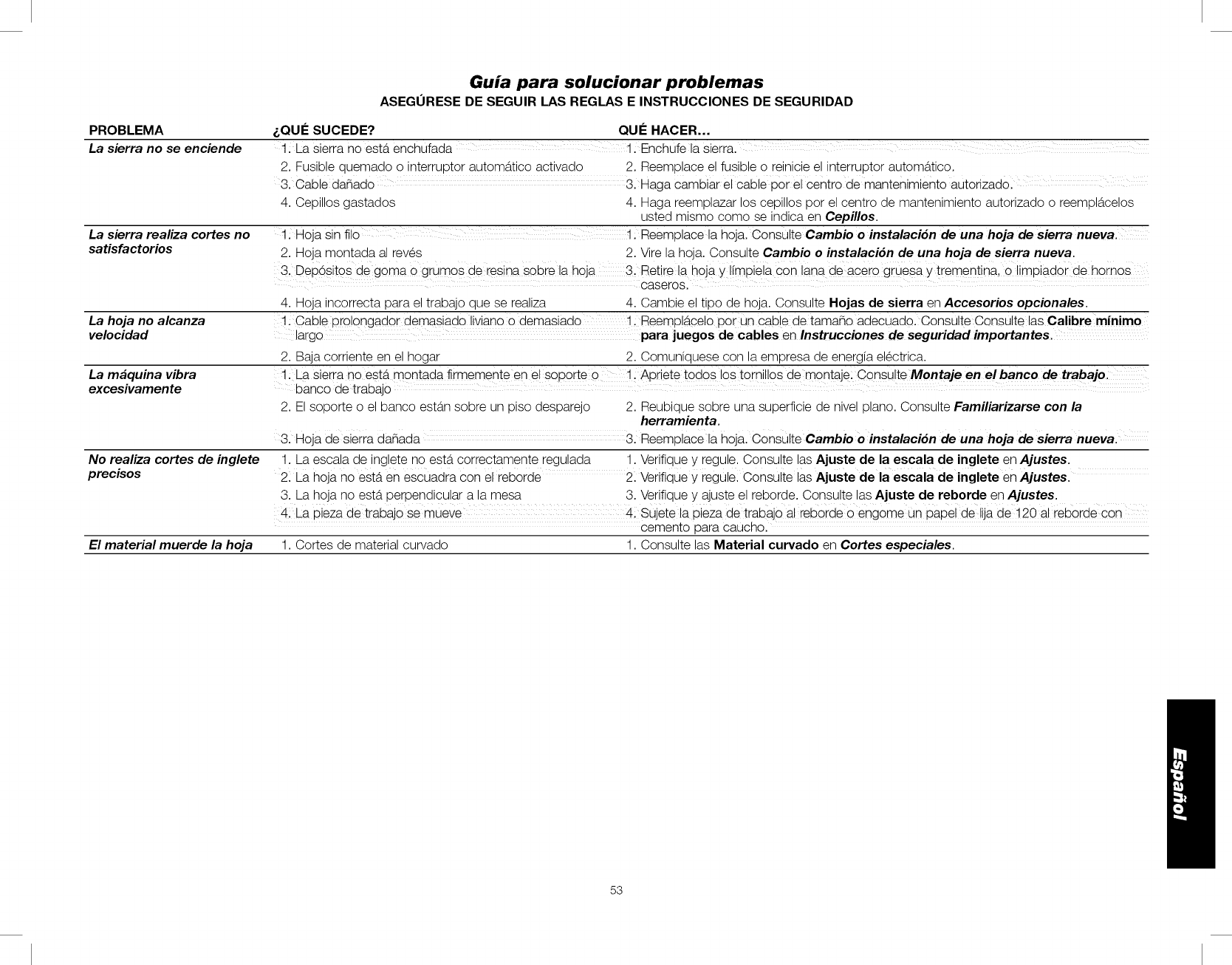 1: La sierra no ester enchufada 1: Enchufe la sierra.