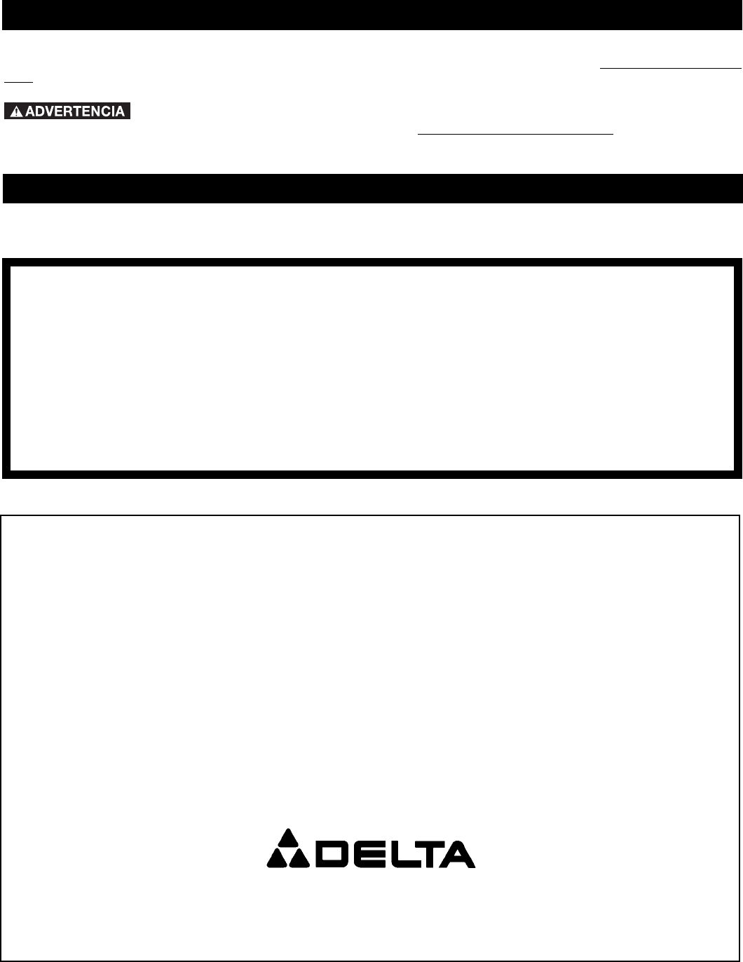 Delta reparará o reemplazará, a expensas y opción propias, cualquier máquina nueva, pieza de máquina nueva o accesorio de máquina nuevo