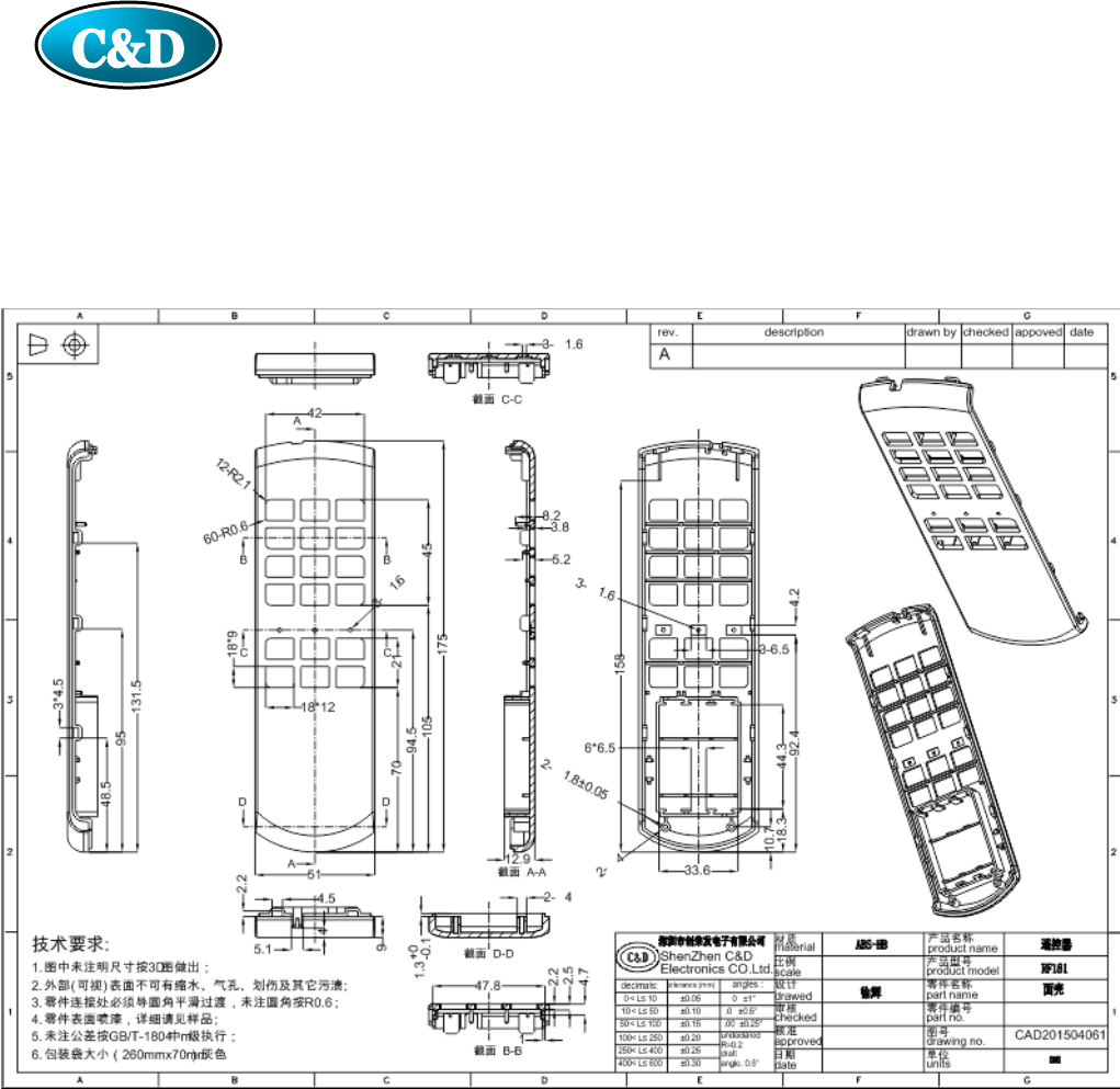 遥控器在放置于‐40º~+70ºC 的高低温环境后仍可正常操作。