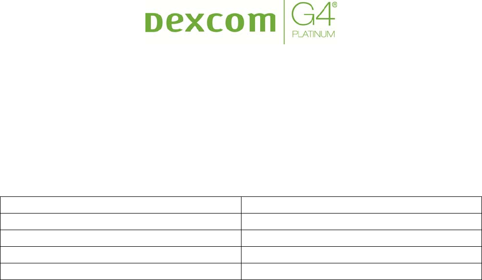 CHAPTER 1: DEXCOM G4 PLATINUM CONTINUOUS
