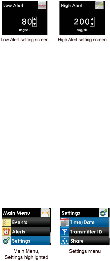 9.2.1 Setting a Snooze Time for Your High and Low Glucose Alerts