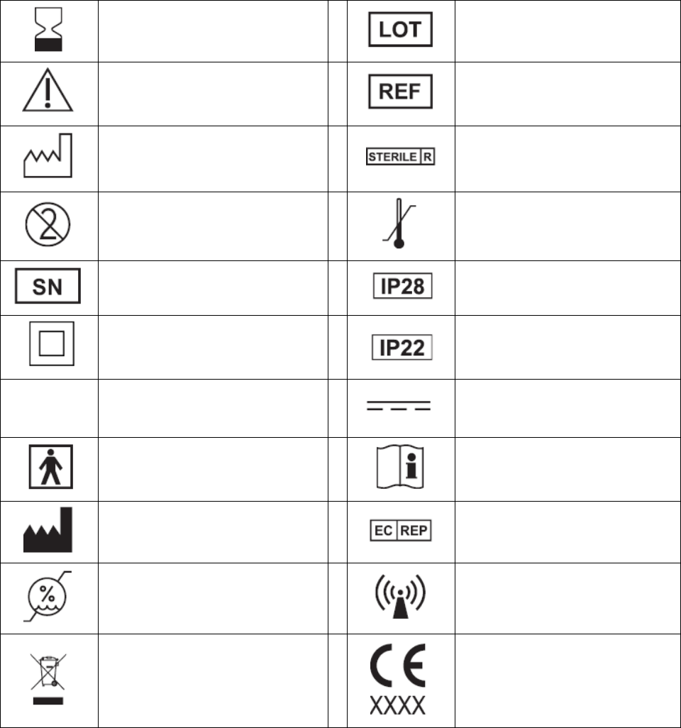 The following symbols may be found on the sensor, transmitter, and receiver package labels. These