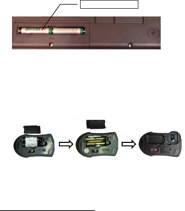 The wireless mouse uses 2 AAA batteries. They are inserted as follows:
