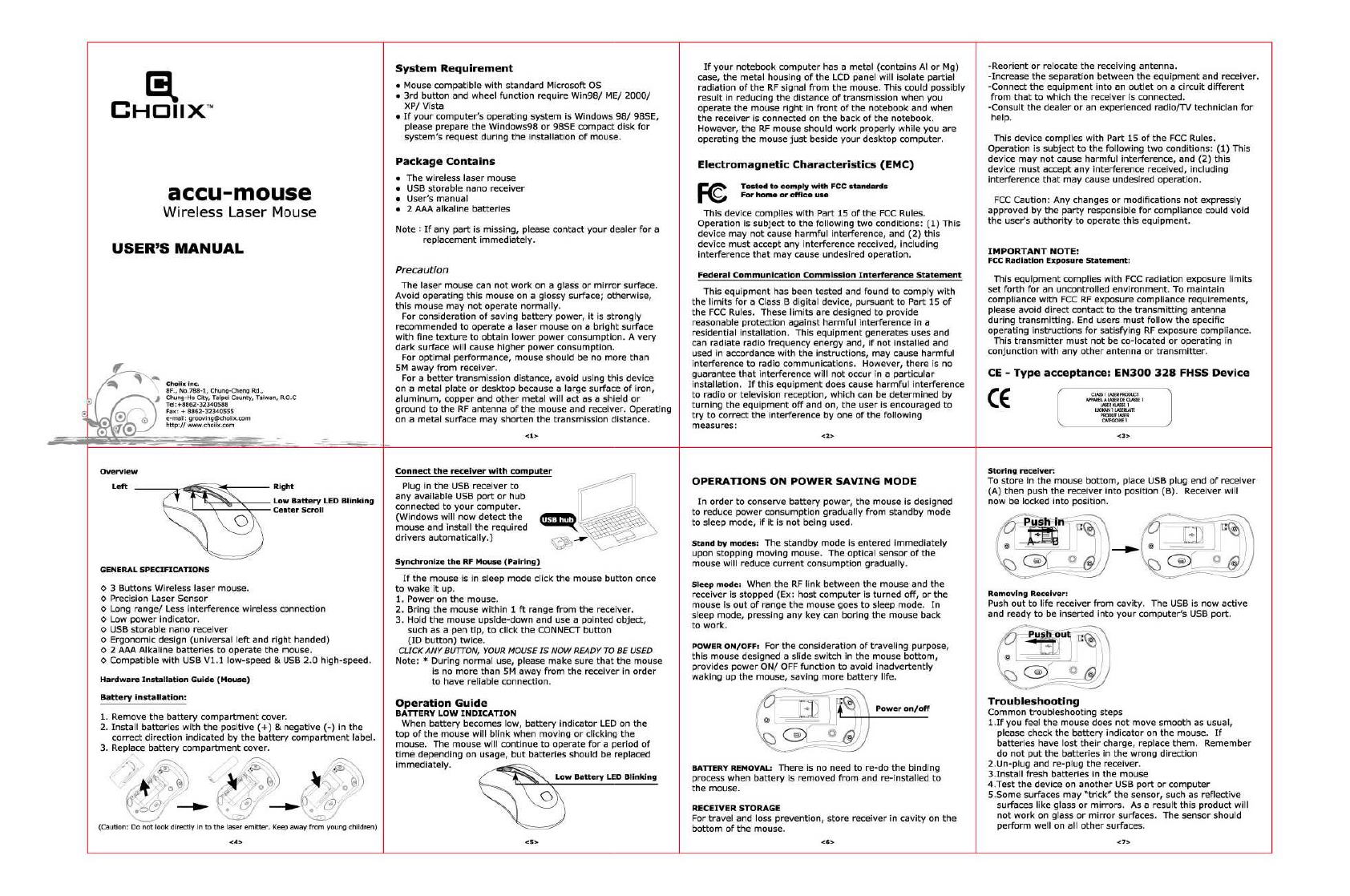 Dexin MWL83-AA6N Wireless Laser Mouse User Manual Manual