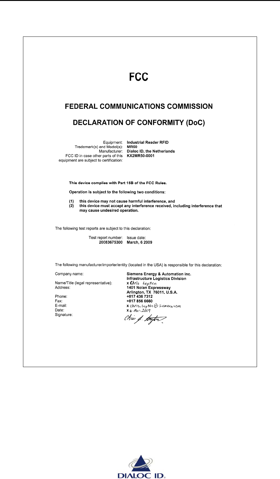 Dialoc ID B.V. MR50 Industrial Reader RFID manual