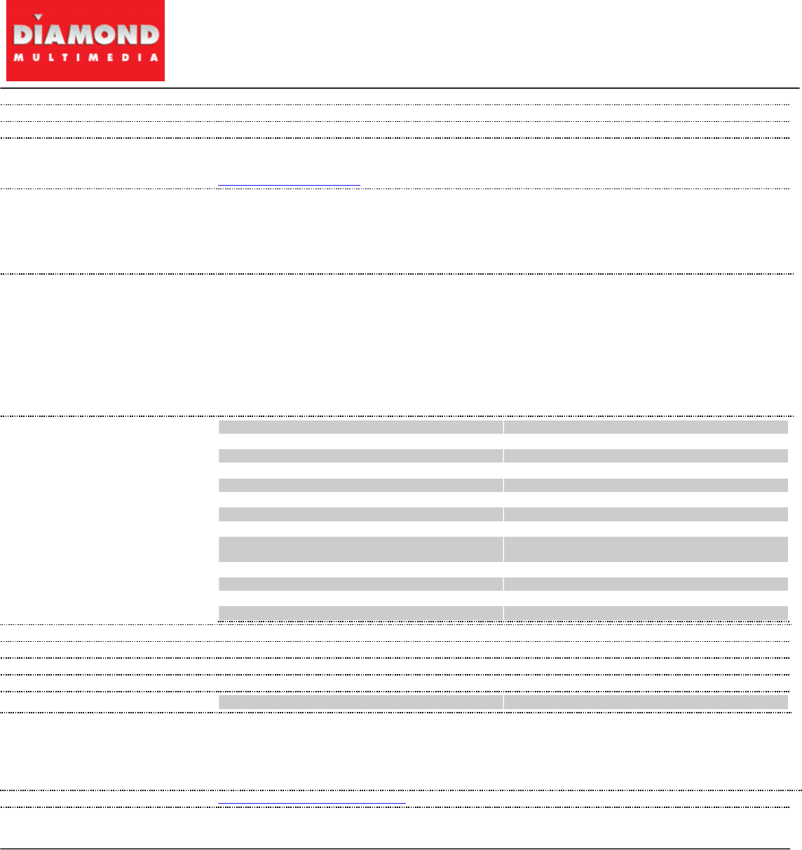 DIAMOND MULTIMEDIA - SPECIFICATION SHEET