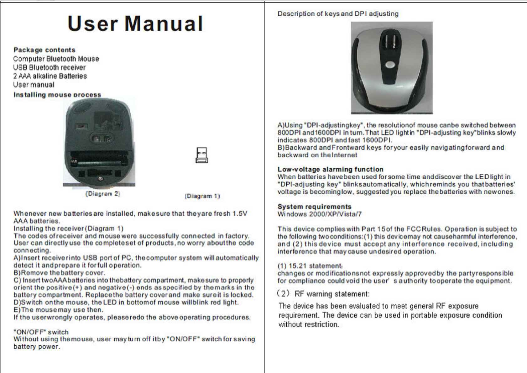 Dianxuntong Electronics DXT-612RF wireless 2.4GHz optical mouse User Manual Full page photo