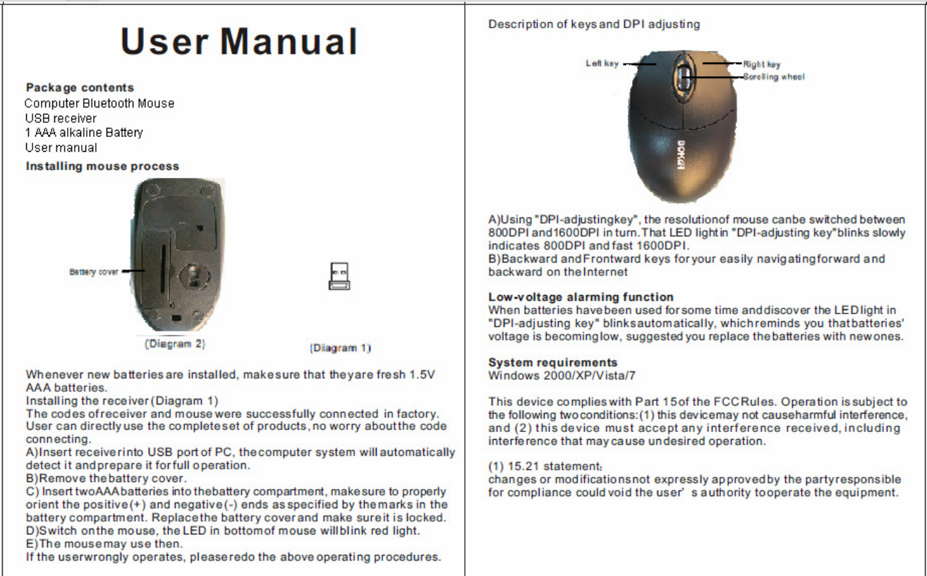 Dianxuntong Electronics DXTM001 Computer wireless mouse User Manual rev01
