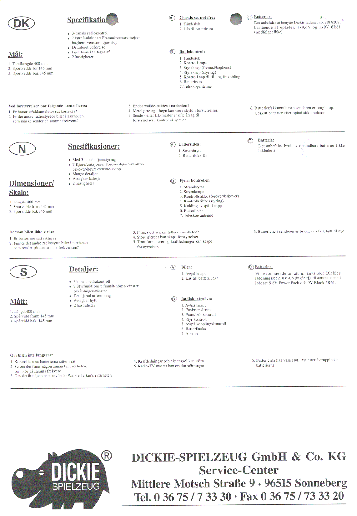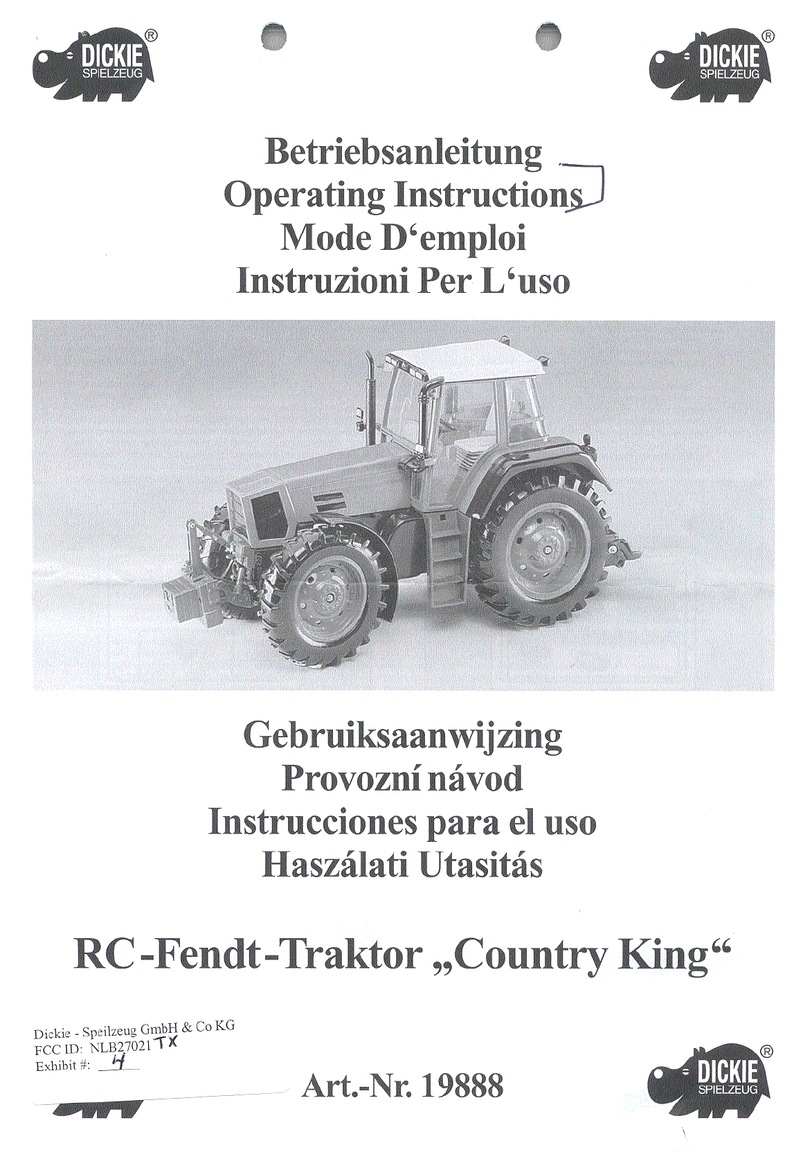 Dickie Toys Hong Kong Ltd. 27 MHz Toy Remote Control TX Users Manual
