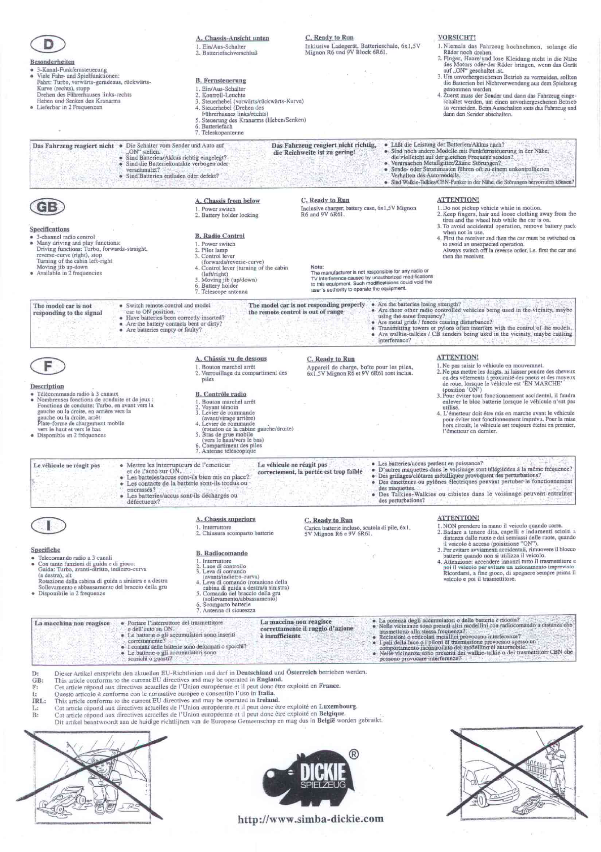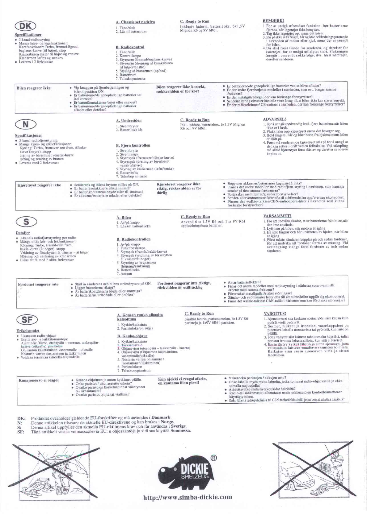 Dickie Toys Hong Kong Ltd. 27 MHz REMOTE CONTROL TRANSMITTER USERS MANUAL