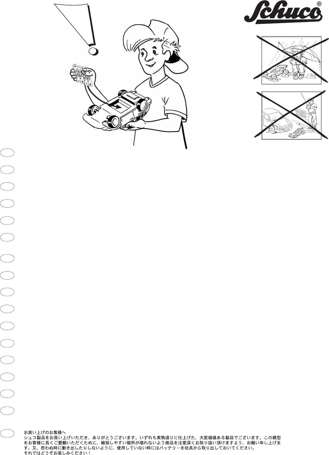 PL: Mocowaç baterie w∏aÊciwymi biegunami. U˝ywaç tylko w∏aÊciwych baterii. Regularnie sprawdzaç stan zu˝ycia baterii. Wyjàç puste baterie z zabawki. Baterii jednorazowych