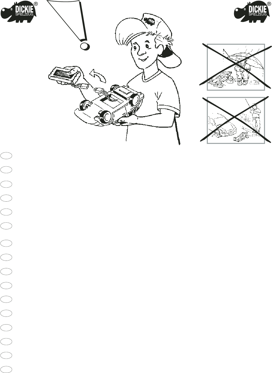 PL: Mocowaç baterie w∏aÊciwymi biegunami. U˝ywaç tylko w∏aÊciwych baterii. Regularnie sprawdzaç stan zu˝ycia baterii. Wyjàç puste baterie z zabawki. Baterii jednorazowych