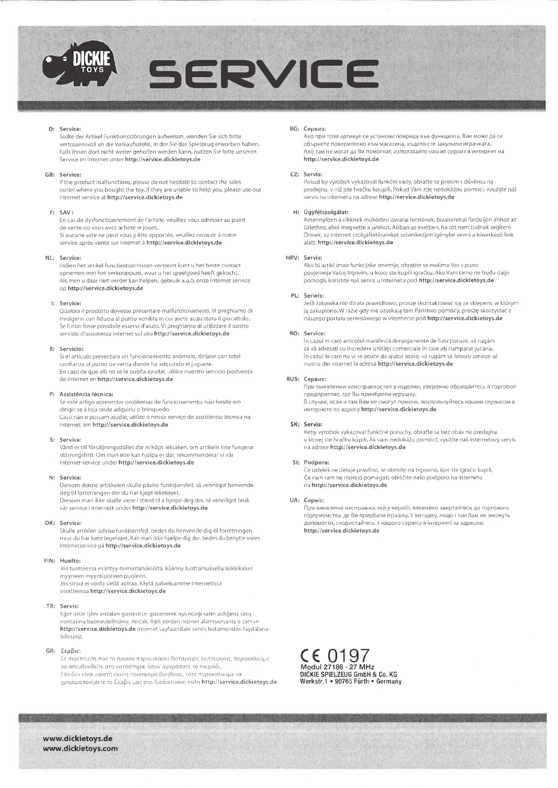 Dickie Toys 27186TX Radio Control Toy Transmitter (27.145MHz) User Manual 01