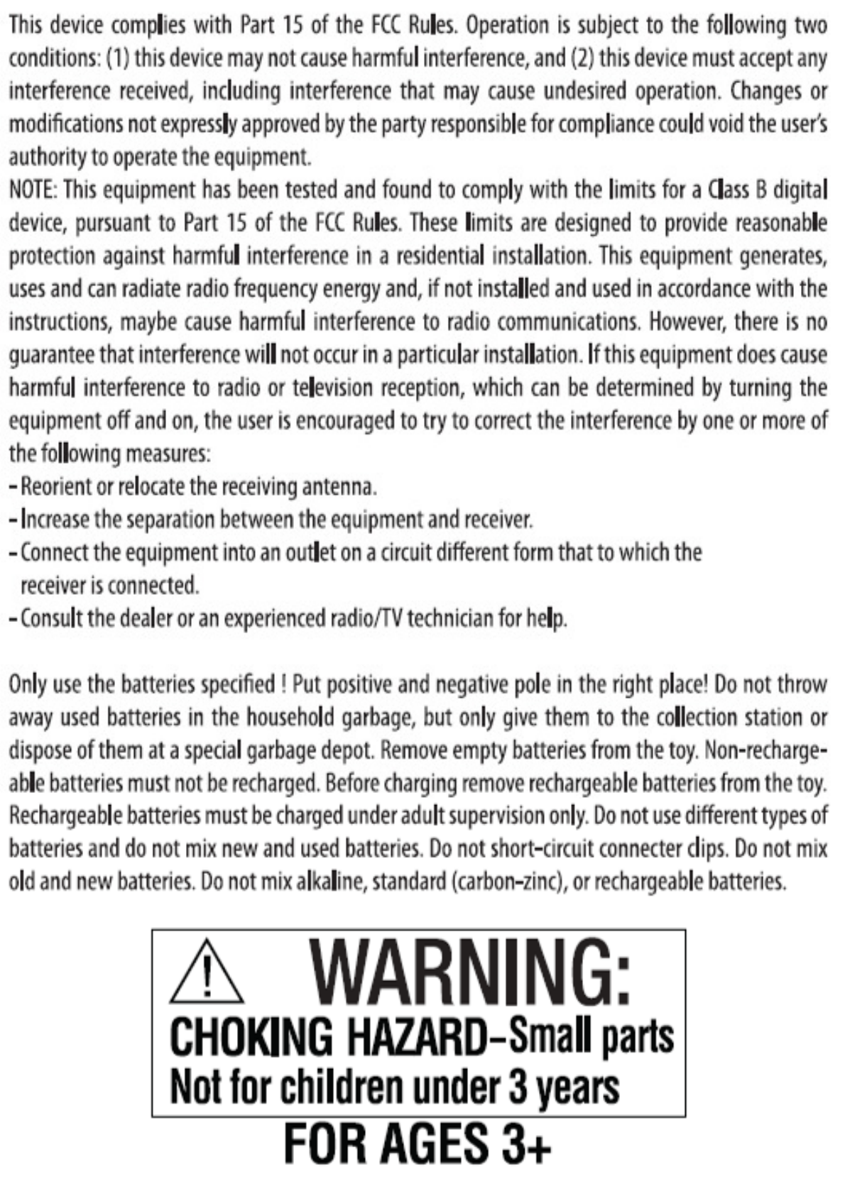 batteries from the toy. Non-rechargeable batteries must not be