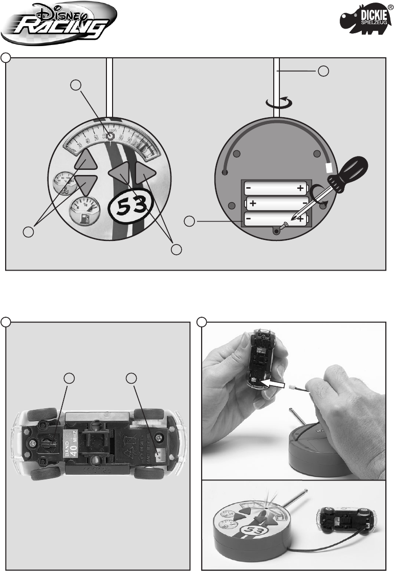 PL: Mocowaç baterie w∏aÊciwymi biegunami. U˝ywaç tylko w∏aÊciwych baterii. Regularnie sprawdzaç stan zu˝ycia baterii. Wyjàç puste baterie z zabawki. Baterii jednorazowych