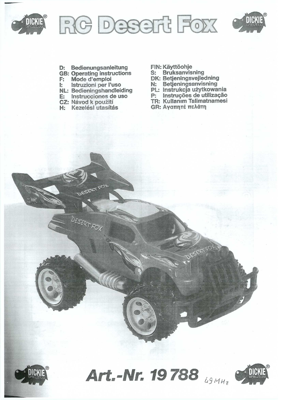 Dickie Toys Hong Kong Ltd. 49 MHZ REMOTE CONTROL TRANSMITTER USERS MANUAL